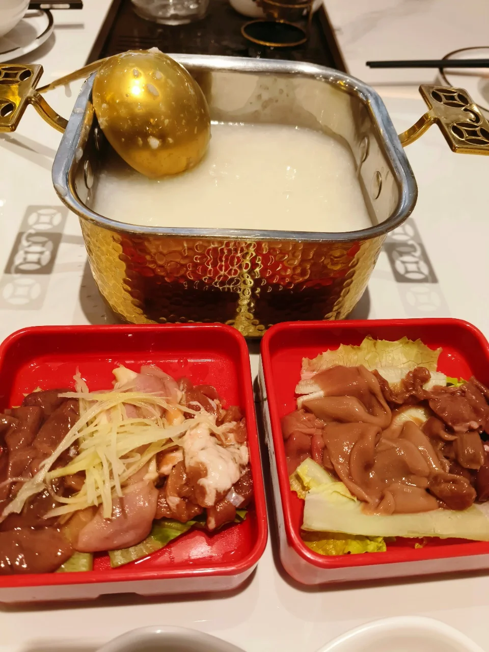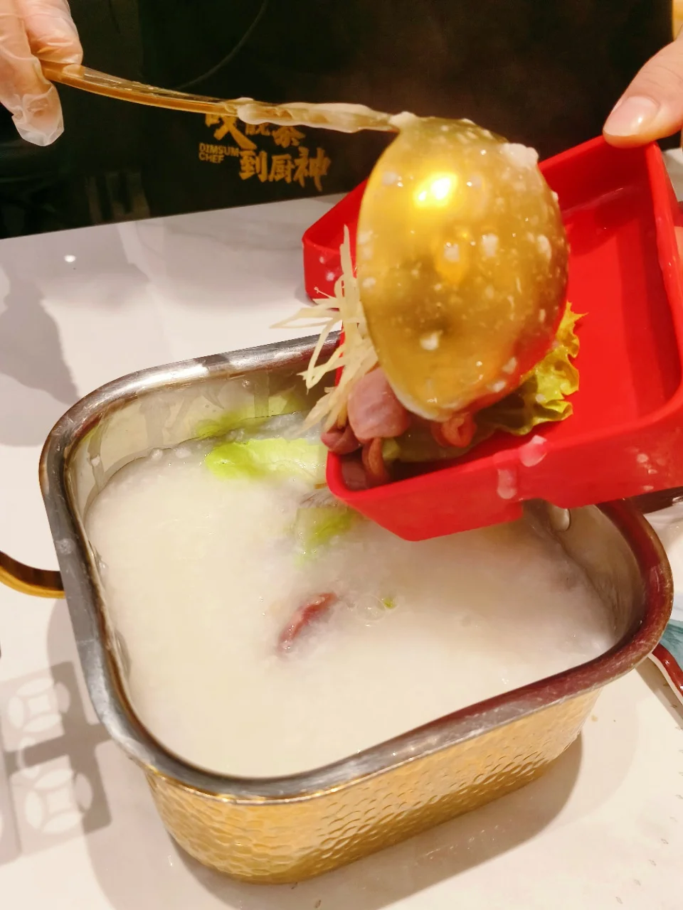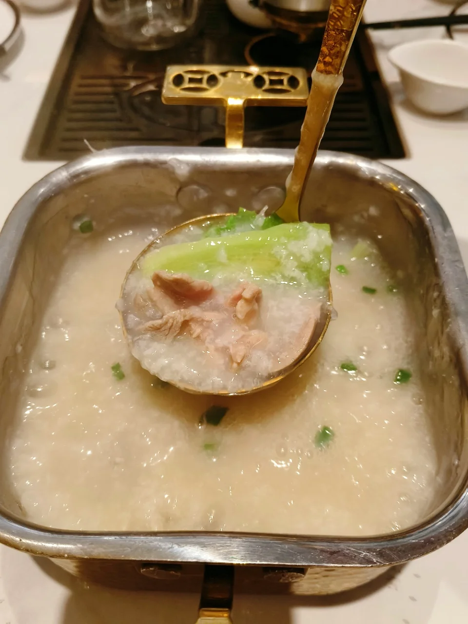 现点现煮,采用有机米,粥底绵绸,现场加入新鲜的猪杂,鲜甜美味