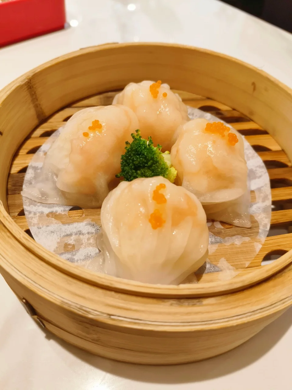 一笼四只,粒粒饱满,皮薄馅靓,透过虾饺皮都能看见大大只的鲜虾仁,入口Q弹