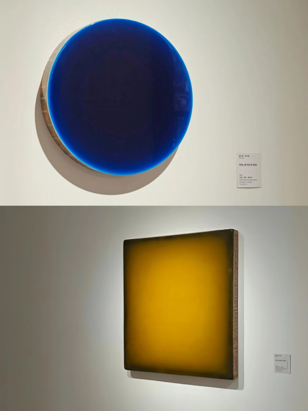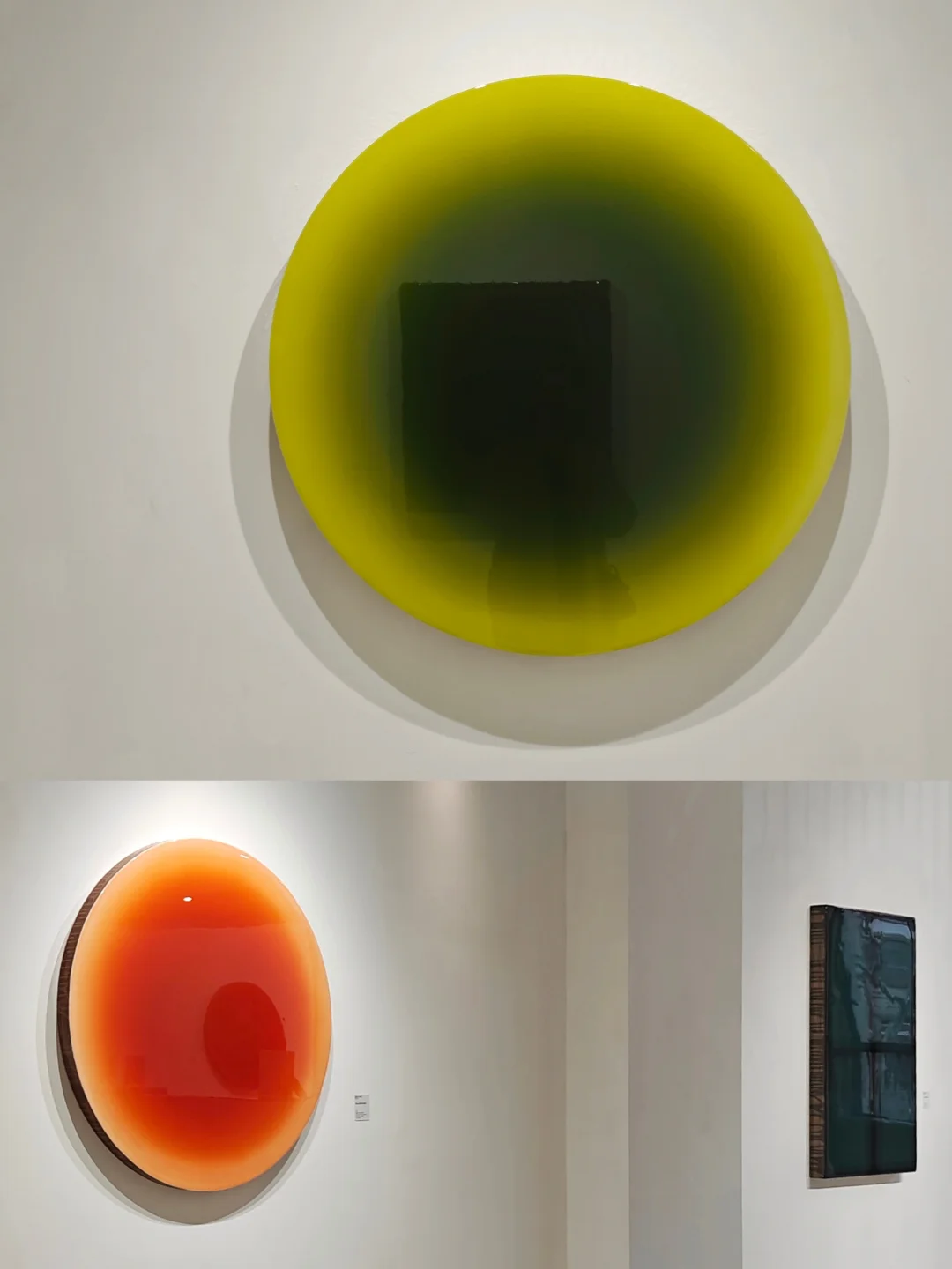 🎨以环氧树脂与颜料为核心媒材,通过多层叠加构筑深邃抽象色块,呈现光学幻觉效果。利用材料透明性与反射性,融入观者倒影及环境漫反射,形成动态互动,模糊现实与虚幻边界。