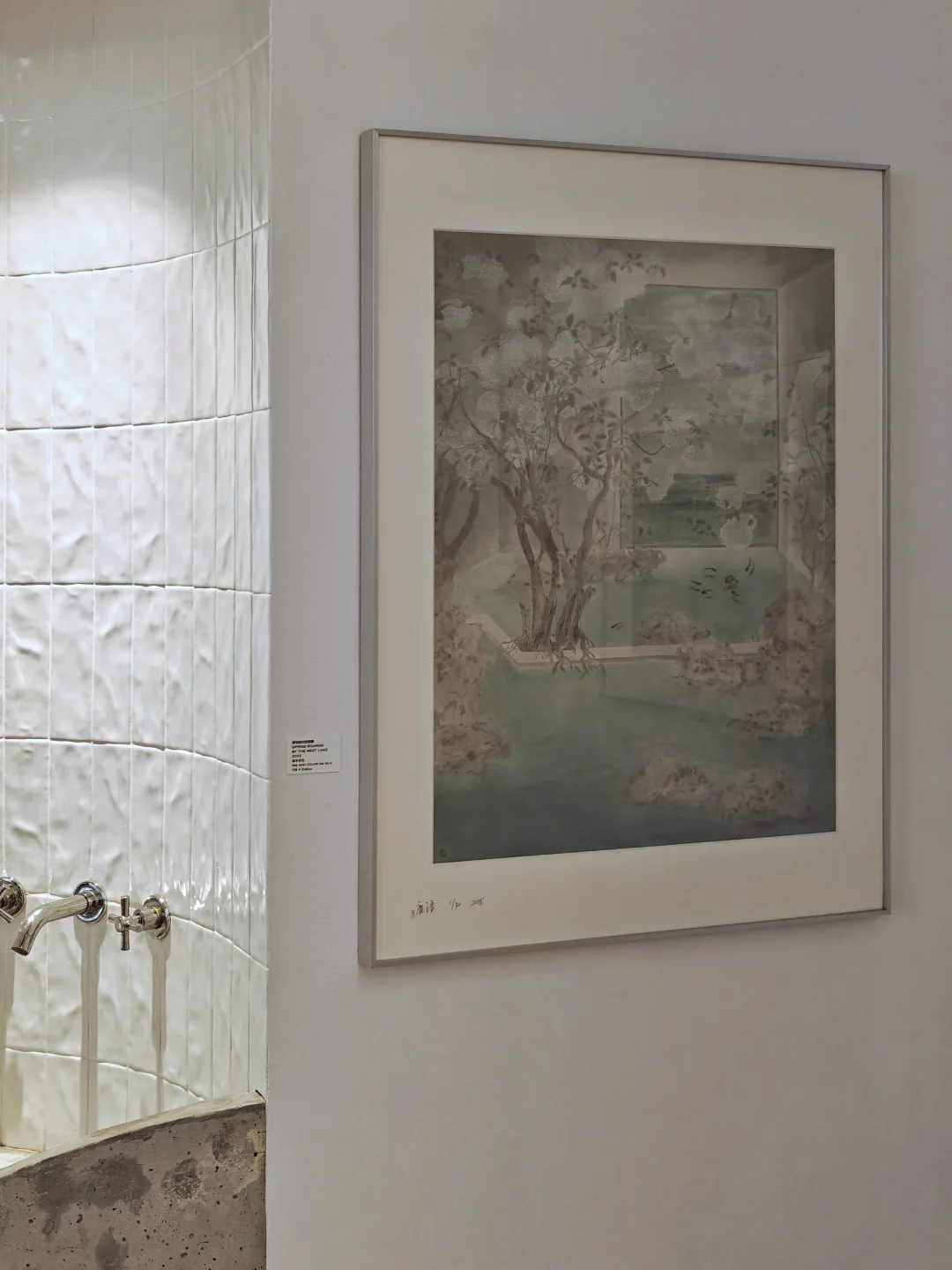 🪞落地玻璃旋转门打造回环动线,呼应画作中流动的自然意象。