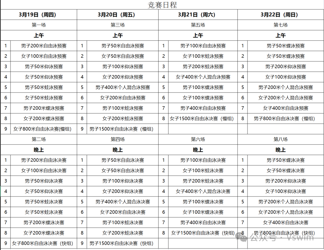 SWim进行时 『9505』2026年全国春季游泳锦标赛⌚时间:2026.03.19-2026.03.22📫地点:深圳龙岗大运中心游泳馆📍项目赛程 见图1📍参赛要求 见图2不止全运会