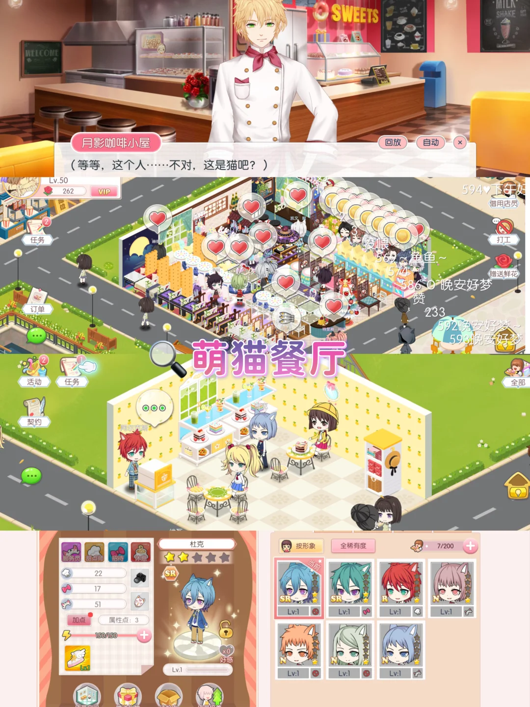 恋爱+养成+模拟经营+女性向。自家猫咪一夜之间变成了帅哥,不同猫咪生成不同的帅哥~经营甜品咖啡店的同时,和不同的猫咪帅哥恋爱~