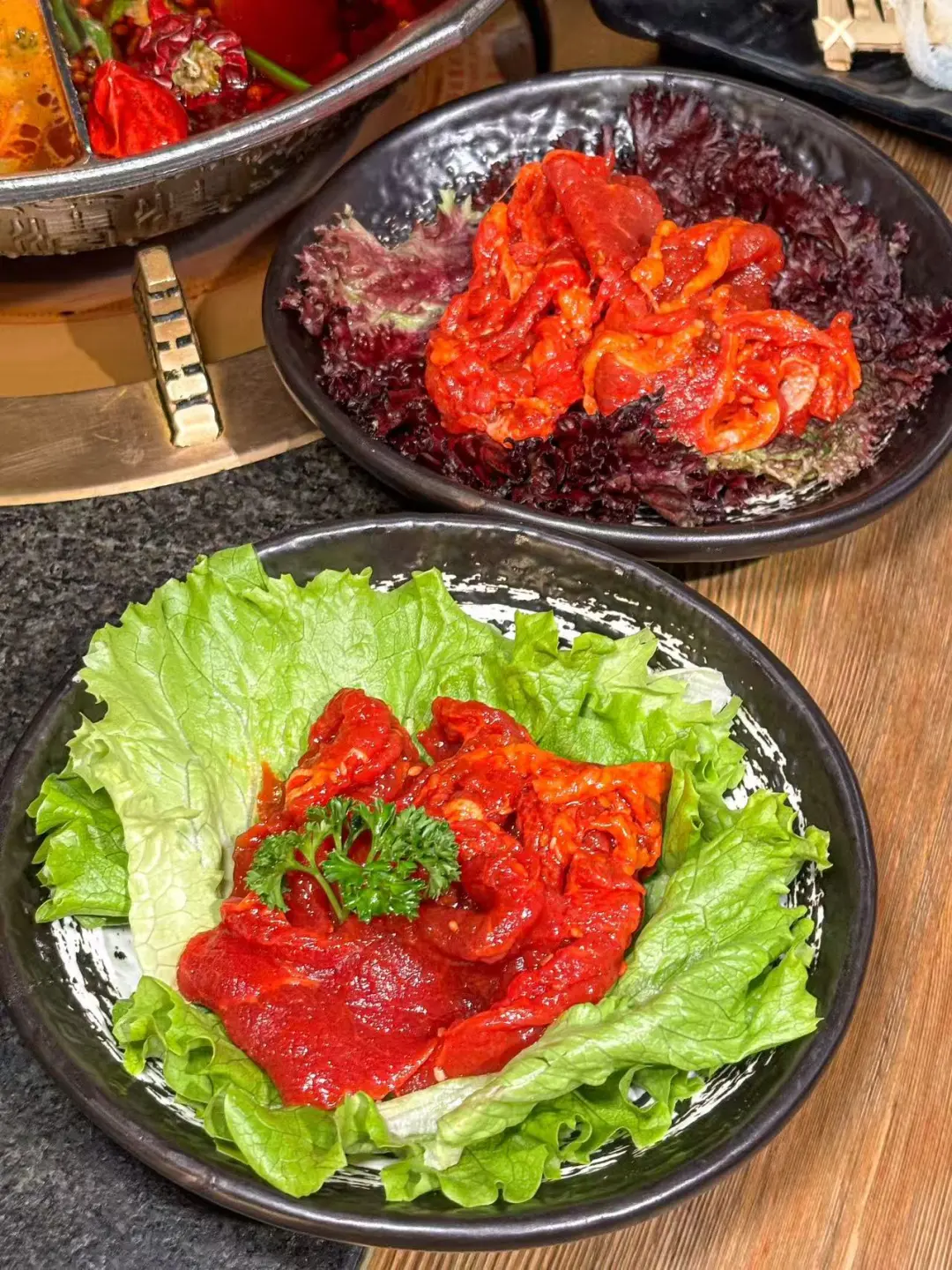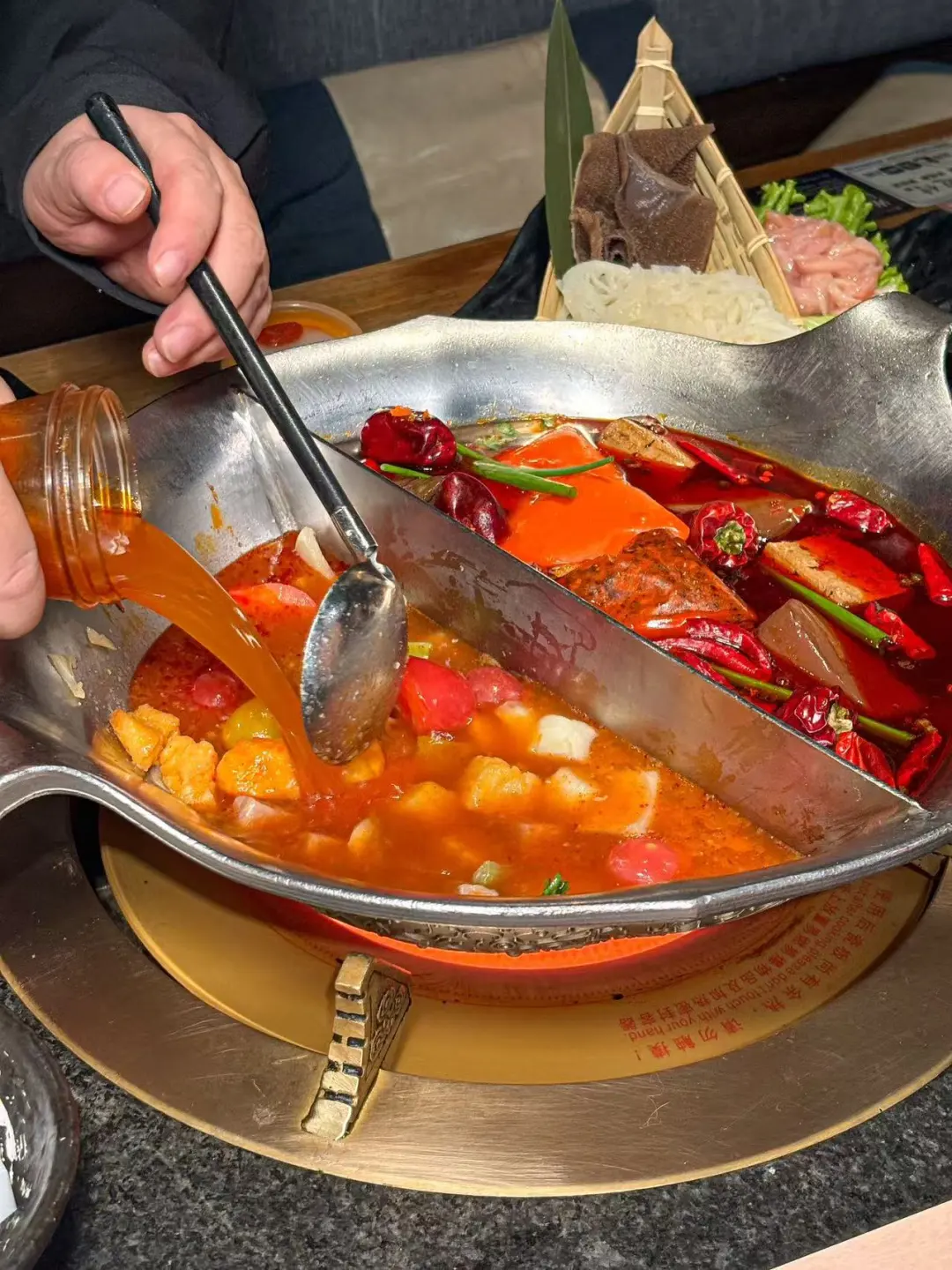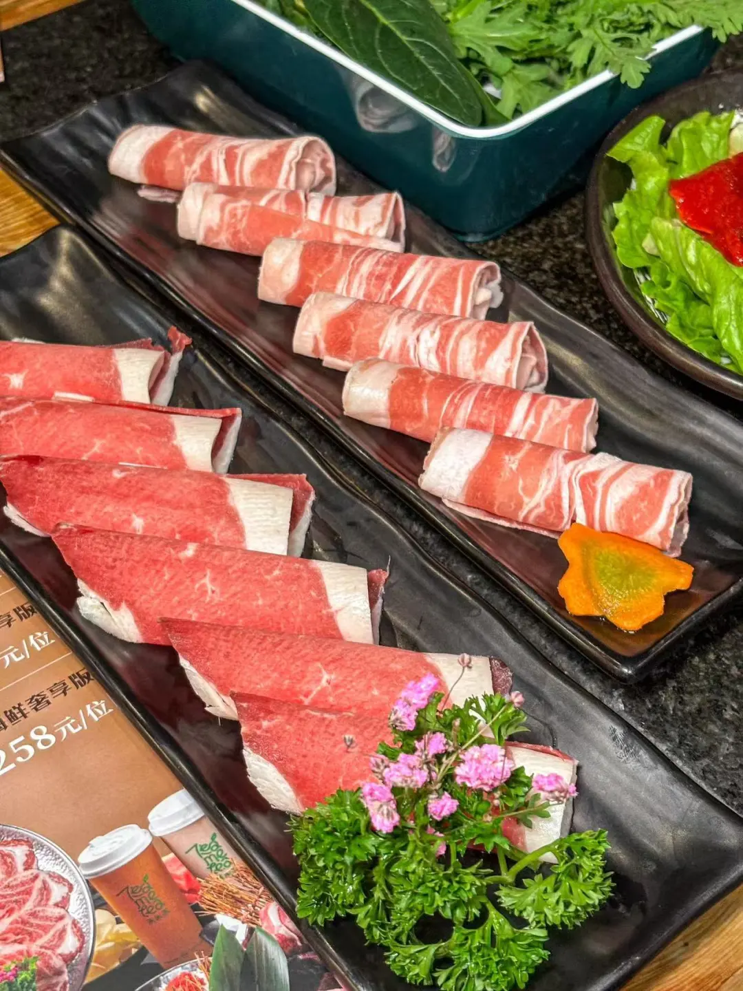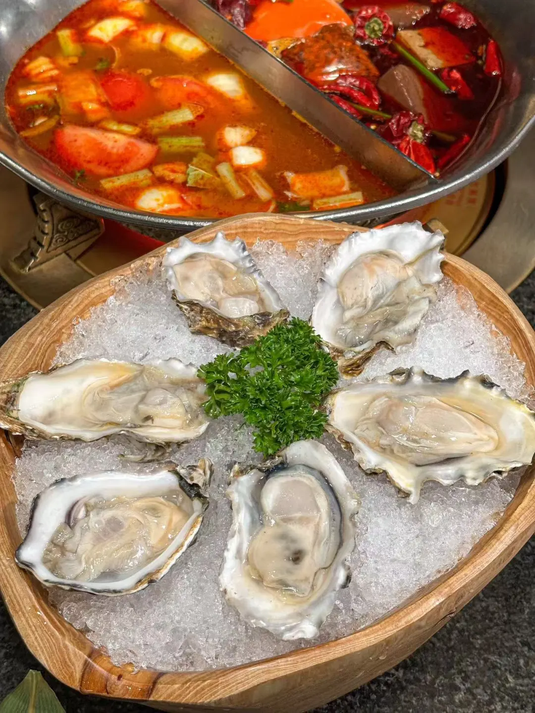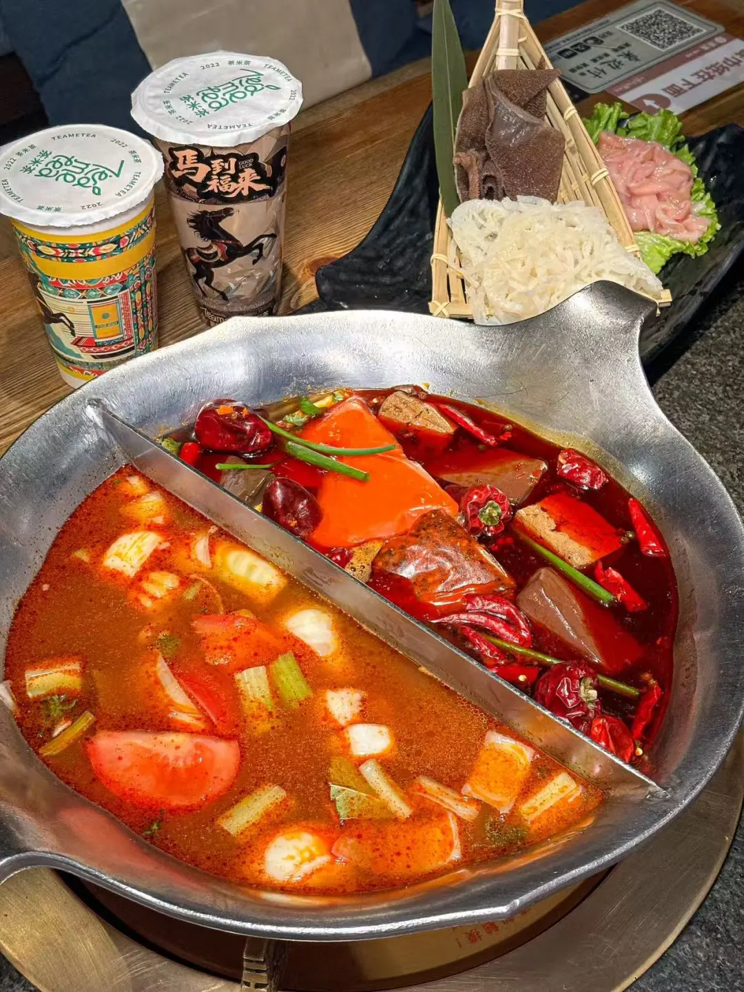 湊湊火锅竟然🈶畅吃了! 火锅脑袋集体狂欢🤯二话不说下班以后直接🐛💨 只点一个锅底感觉有、亏,所以选了鸳鸯锅:大红袍茶香麻辣锅+番茄罗宋牛肉锅🥘麻辣+酸甜,涮啥都香迷糊了!!