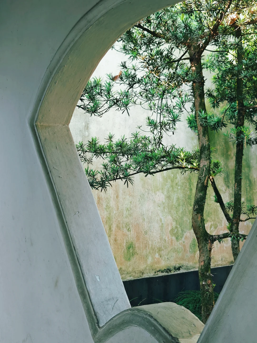 •岁寒三友:乐天轩西侧明代黑松、方塔捐赠的湘妃竹及元代遗存的老梅桩组合