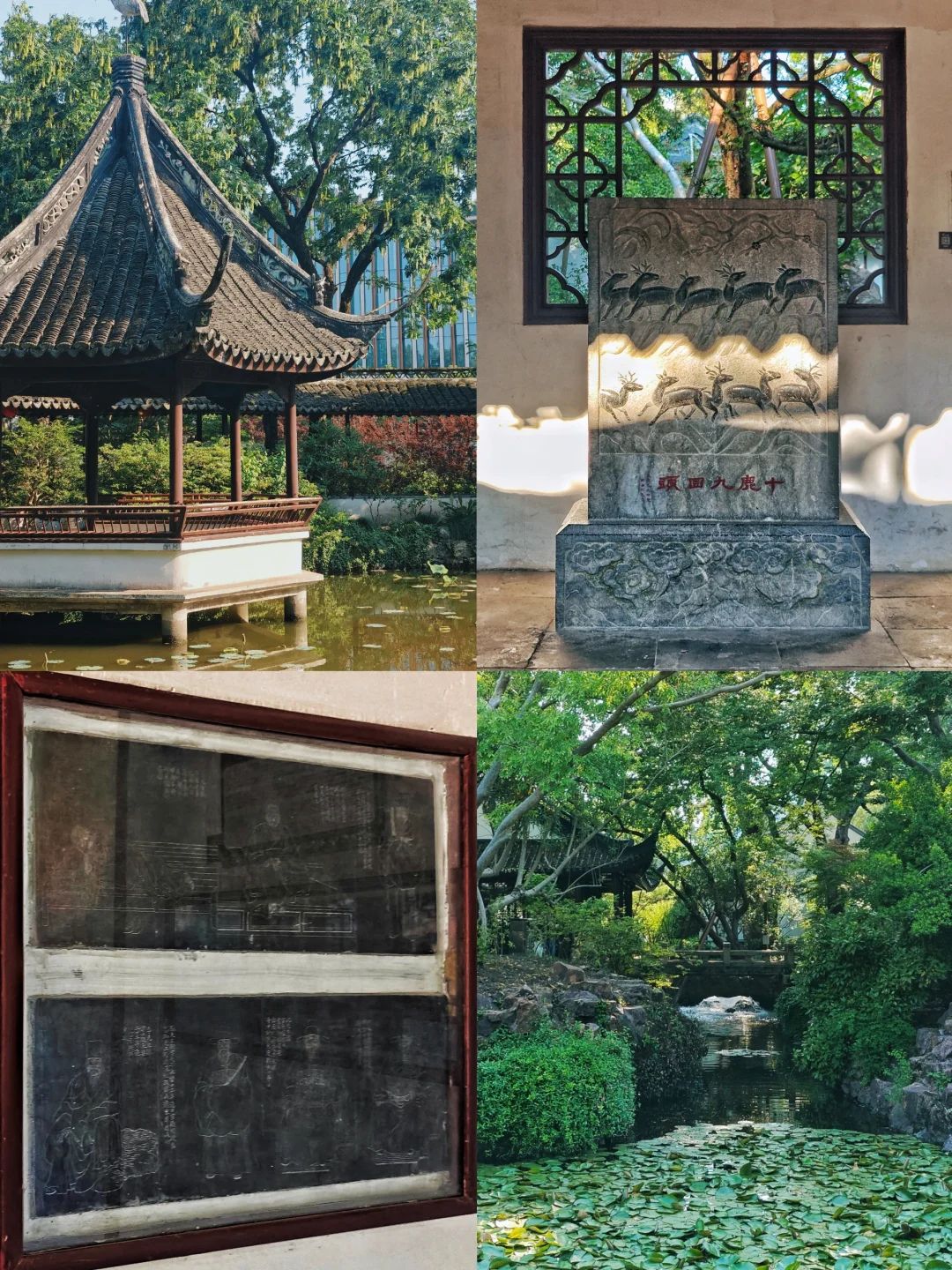 •十鹿九回头石碑:隐喻松江文人虽仕途远行仍心系故土,为江南地区"衣冠南渡"文化记忆的经典视觉符号(真品在松江博物馆)