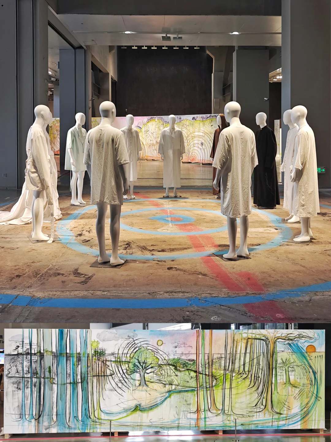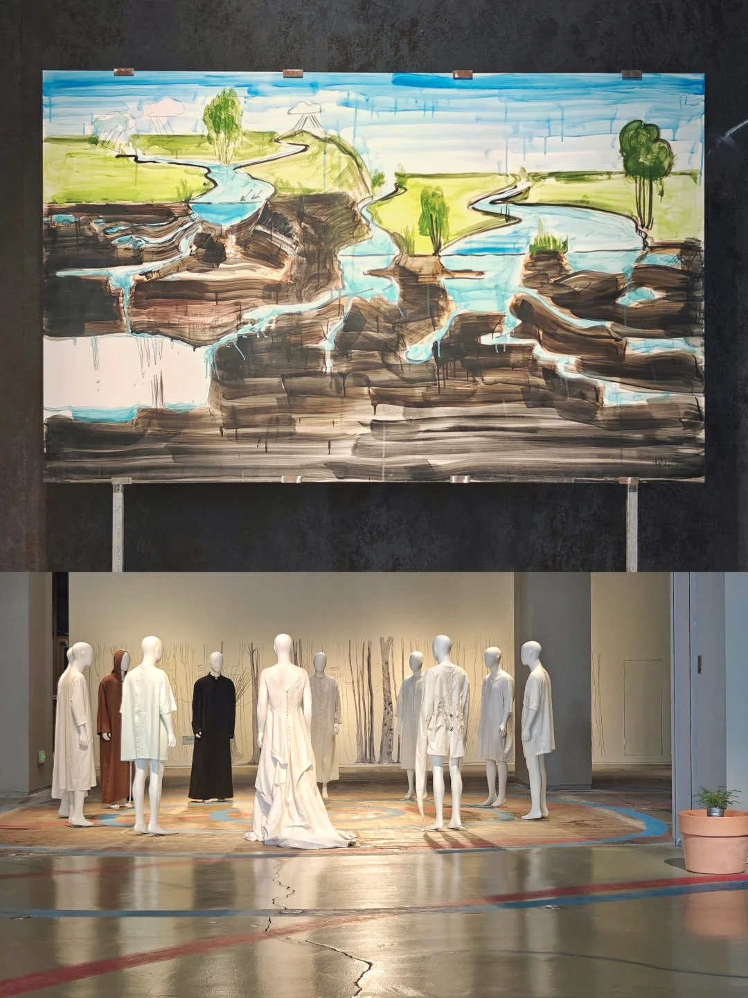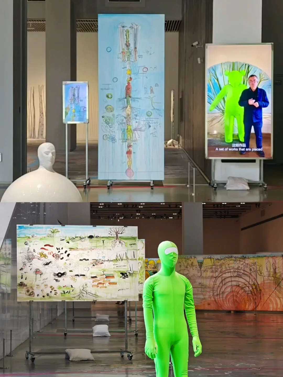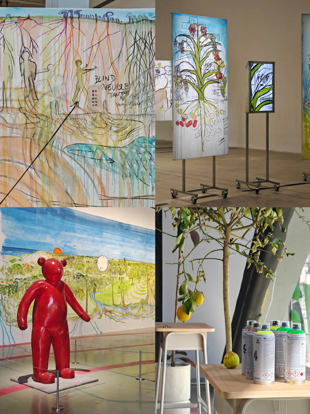 🟢36幅油画与十余幅景德镇瓷板画置于可移动支架上,模拟黑板形式,邀请观众以学习者身份互动。驻地创作的瓷板画为首次亮相,融合釉下彩工艺与中国文化元素。