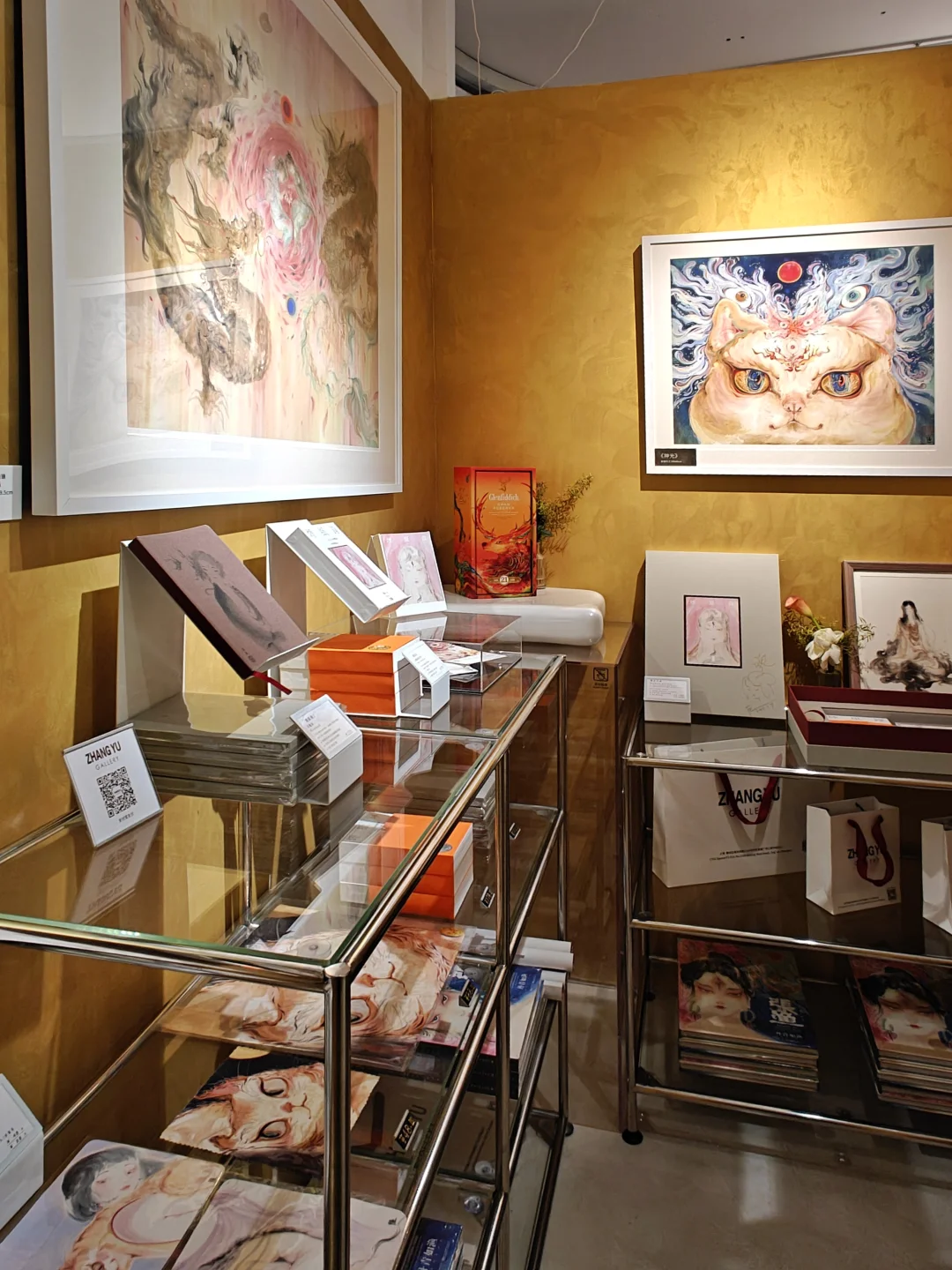 👉所谓的“新国风”,属于讨喜的视觉风格,很好卖的那种,消费品属性较高,开在商场里倒也是挺合适的。。这个画廊应该是艺术家本人的个人艺廊,开幕以来做的都是其个人作品展览。个人感觉美则美矣,缺了点耐看度。(而且多少有点天野喜孝的影子。)不过确实很适合挂在家里,艺术也不一定要承载太多,纯粹当成装饰品也不是不行,好看就完事了。