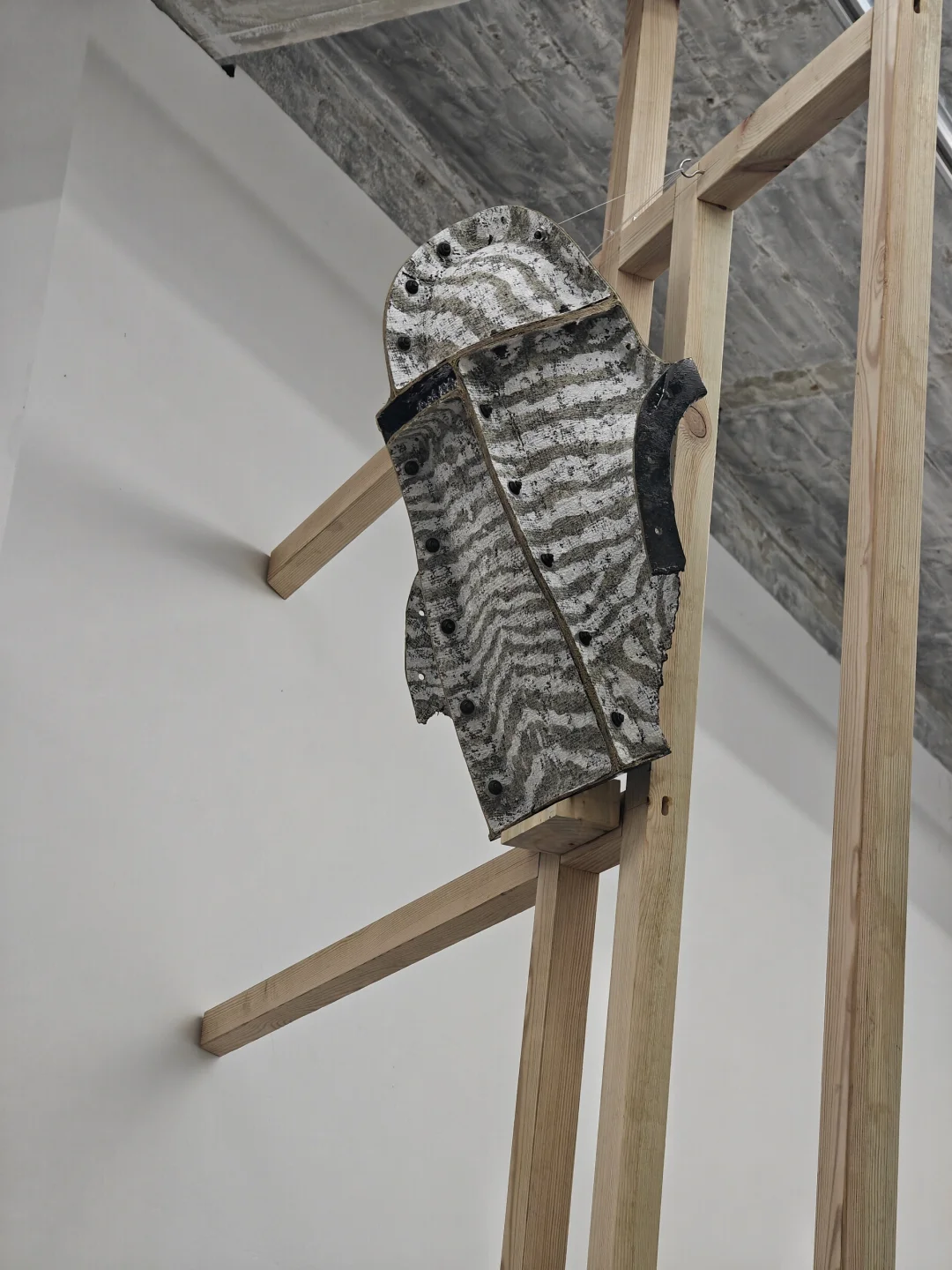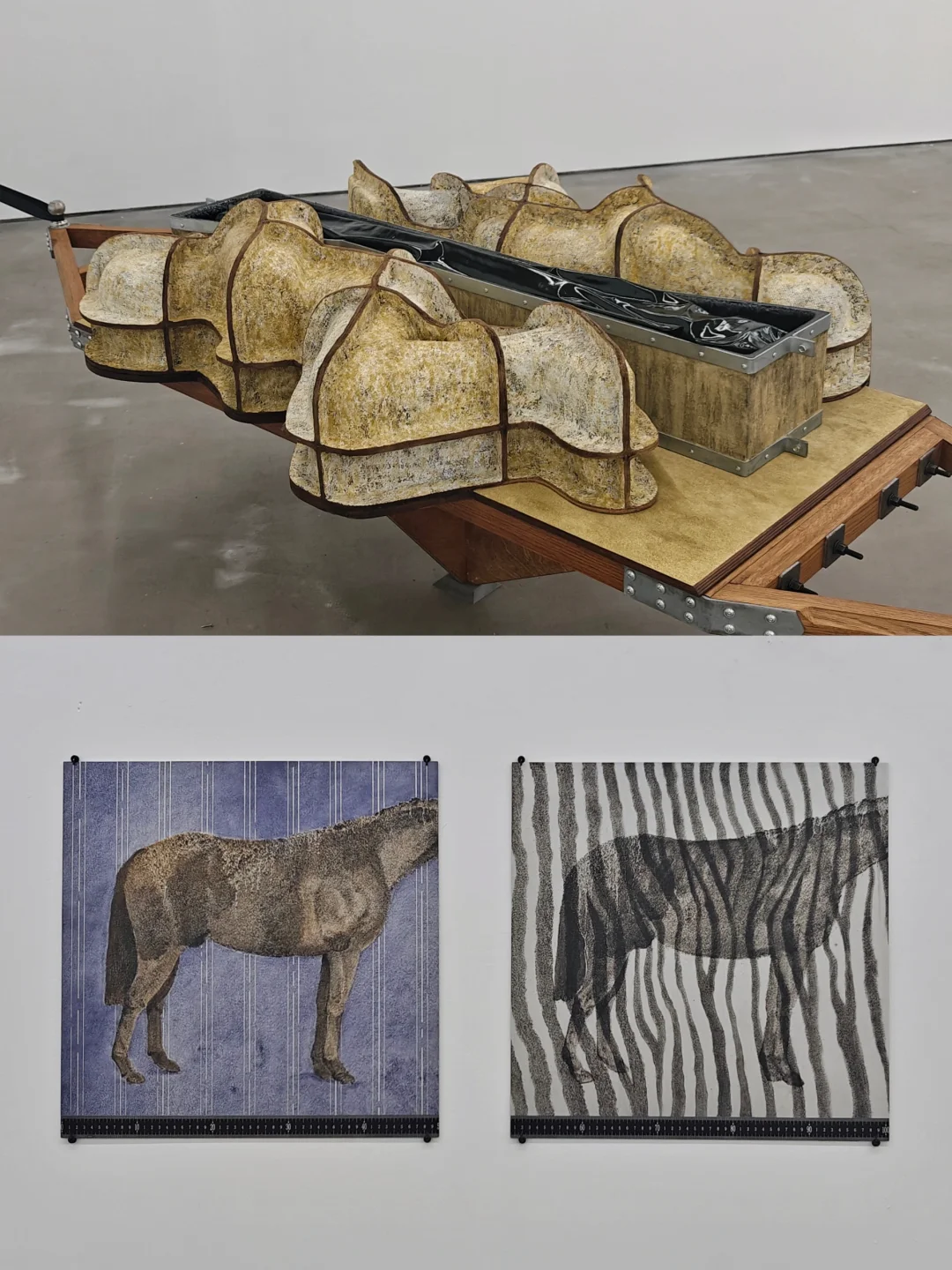 🖼️装置作品通过雕塑外模造型和历史隐喻探讨伪装和欺骗的主题。