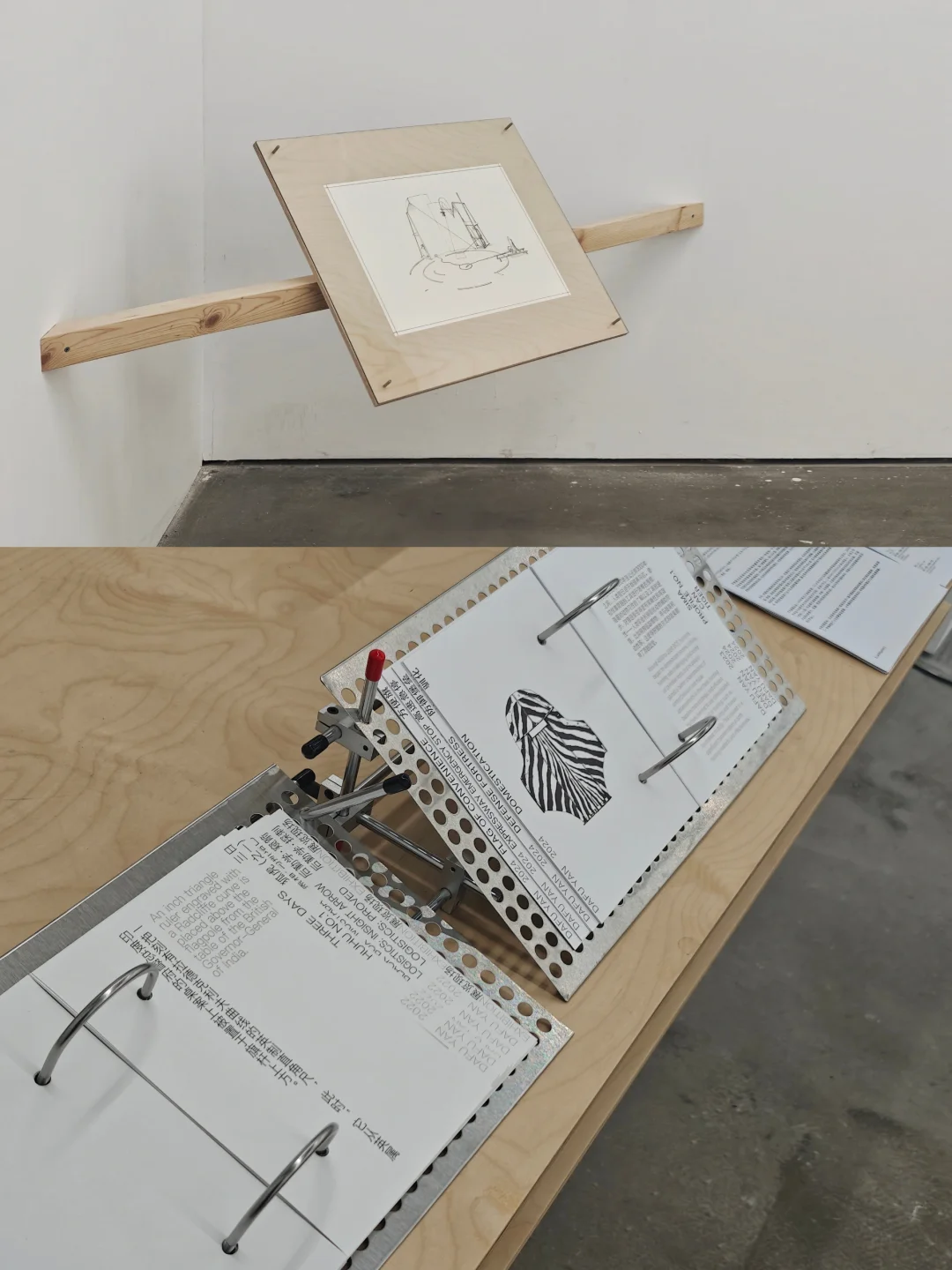 🖼️所有的作品都是艺术家自己在机床上做出来,这也是他从肯特里奇那儿学来的创作理念,一定要自己动手做工(现场有一张他画的装置手稿图)。