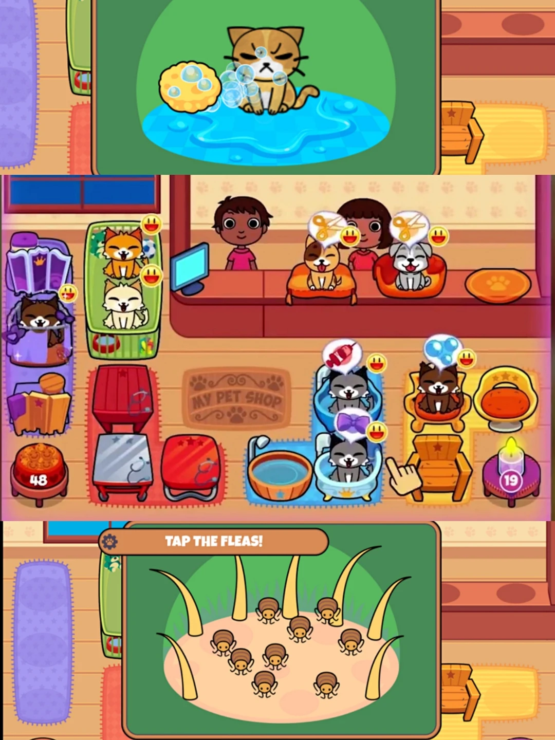 相当于宠物诊所🏥,给予宠物洗澡🚿刷毛 打针💉等一系列服务的游戏