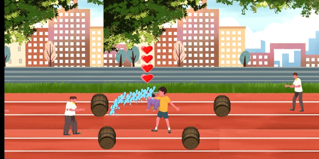 是指一个男孩保护身后的女孩,所以男孩需要不断击退过来的人