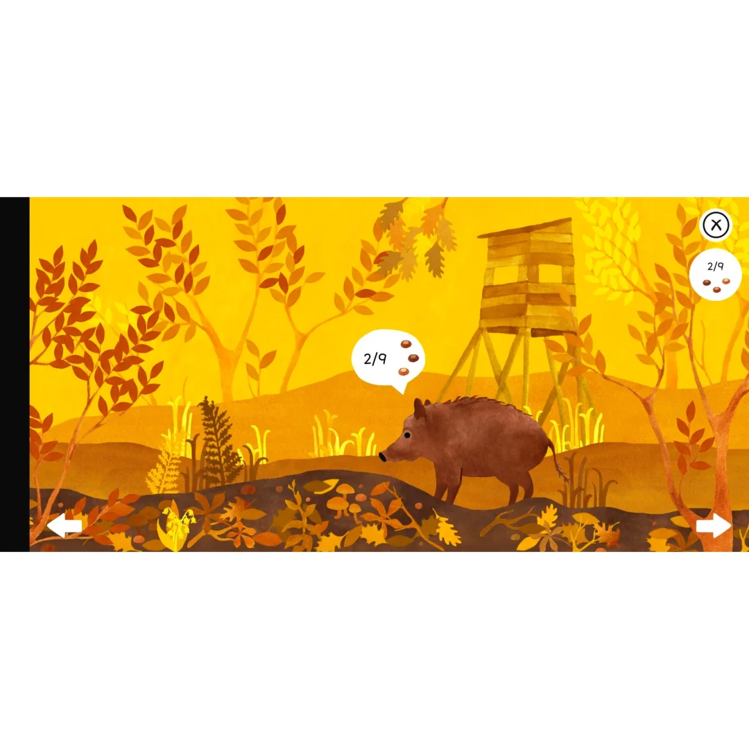 根据动物所在地得风格来做的地图场景,根据动物需求找出相应的东西,比如帮野猪🐗找栗子🌰,帮找毛毛虫🐛等,好多颜色都藏在一起,很多时候就剩最后一个,但就是找不出来