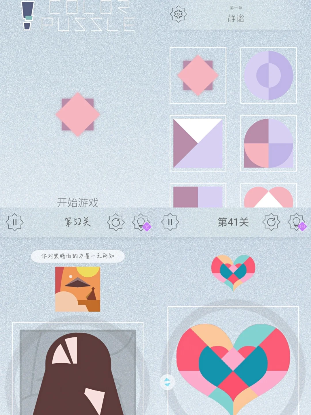这是一款益智拼图游戏。纯玩,不肝,不氪,不弹广告。关键游戏画面的质感真的绝了,配的音乐也很唯美。可以充分发挥想象力、动脑的好游戏,真的五星好评。