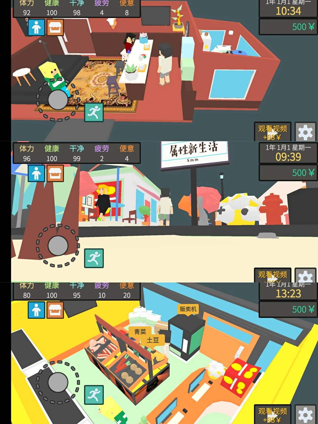 相信绝大部分都玩过1和2,。相对1和2来说,属性与生活3增强了游戏的自由度。比如选择租或买房子,房屋可以自由装修,家具自由摆放;操控画面,自由移动人物角色;最新奇的还是更多种的赚钱方式,摆摊或推销都可,甚至可以用乞丐的身份过一生。目前游戏只能在✨好游快爆✨上下载,想玩的快去下载吧!