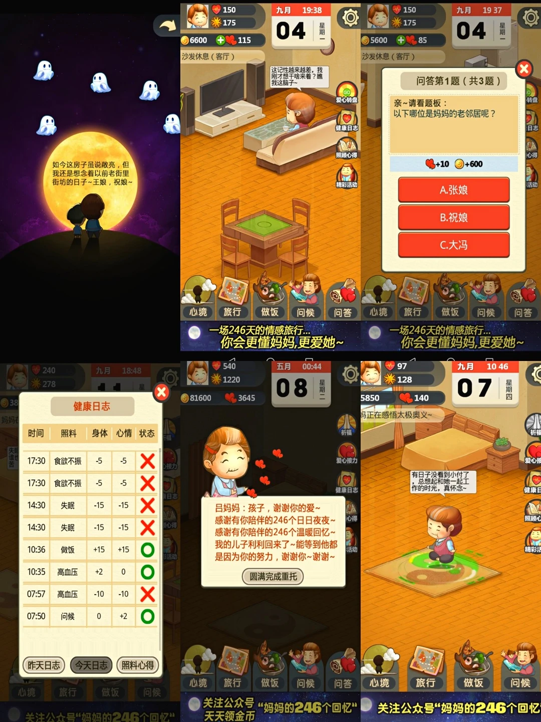 这其实是一款情感治愈游戏,和昭和系列有些相似。游戏立意特别好,和妈妈共同度过246天,需要你好好照顾她。问候,做饭,带她旅游等等,而且游戏里的时间和现实同步,这也加大了游戏的难度。