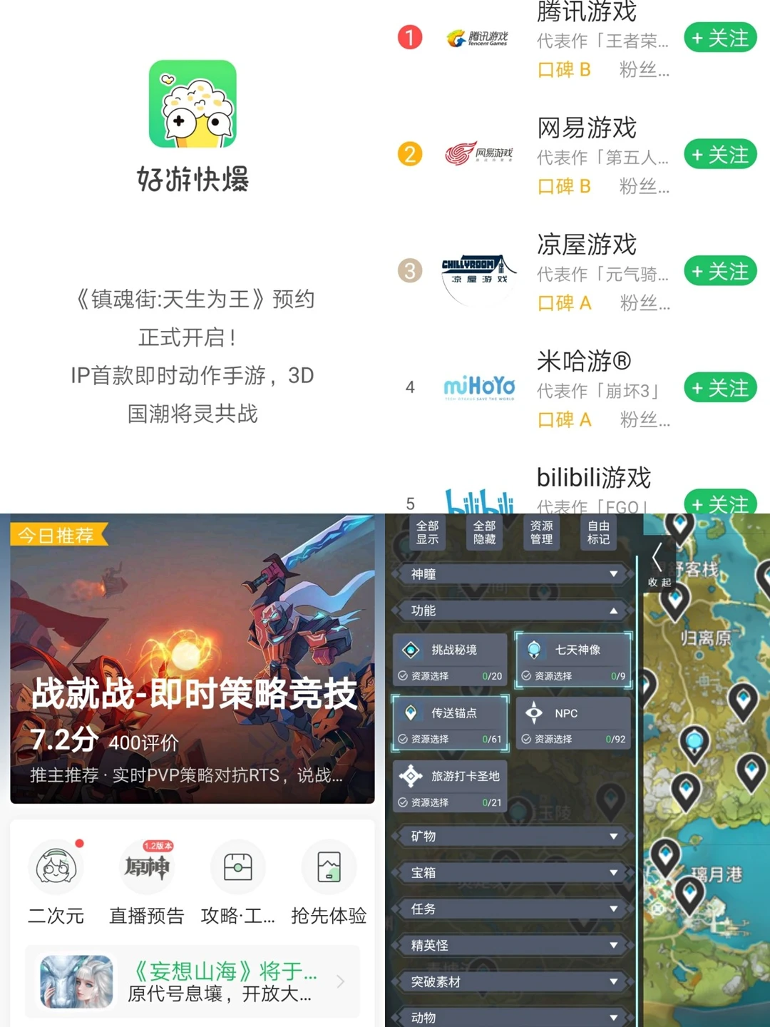 经常有安卓小伙伴说不知道在哪下载游戏,好游快爆就是一个选择。它的特点在于可以抢先内测很多新游,比如刚推荐的属性与生活3以及皮影京剧。另外,我发现它还是个原神地图资源查询器,可以帮玩原神的宝宝们看地图找资源。