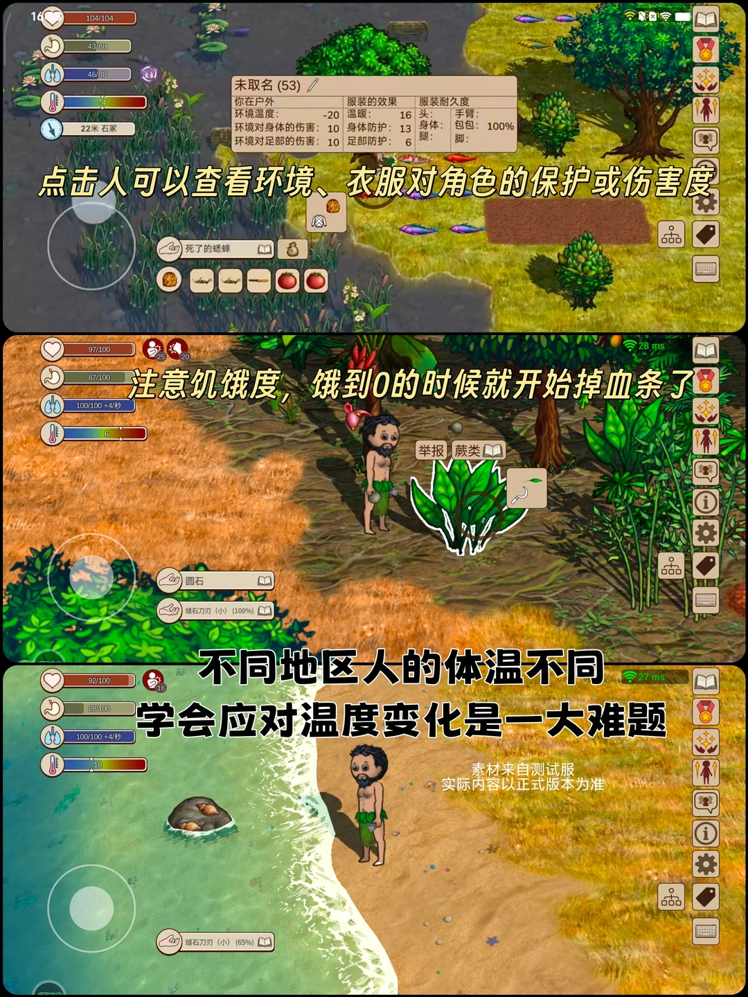 ▪️饥饿值到0后,再不补充食物,就会掉血条,生命会over~