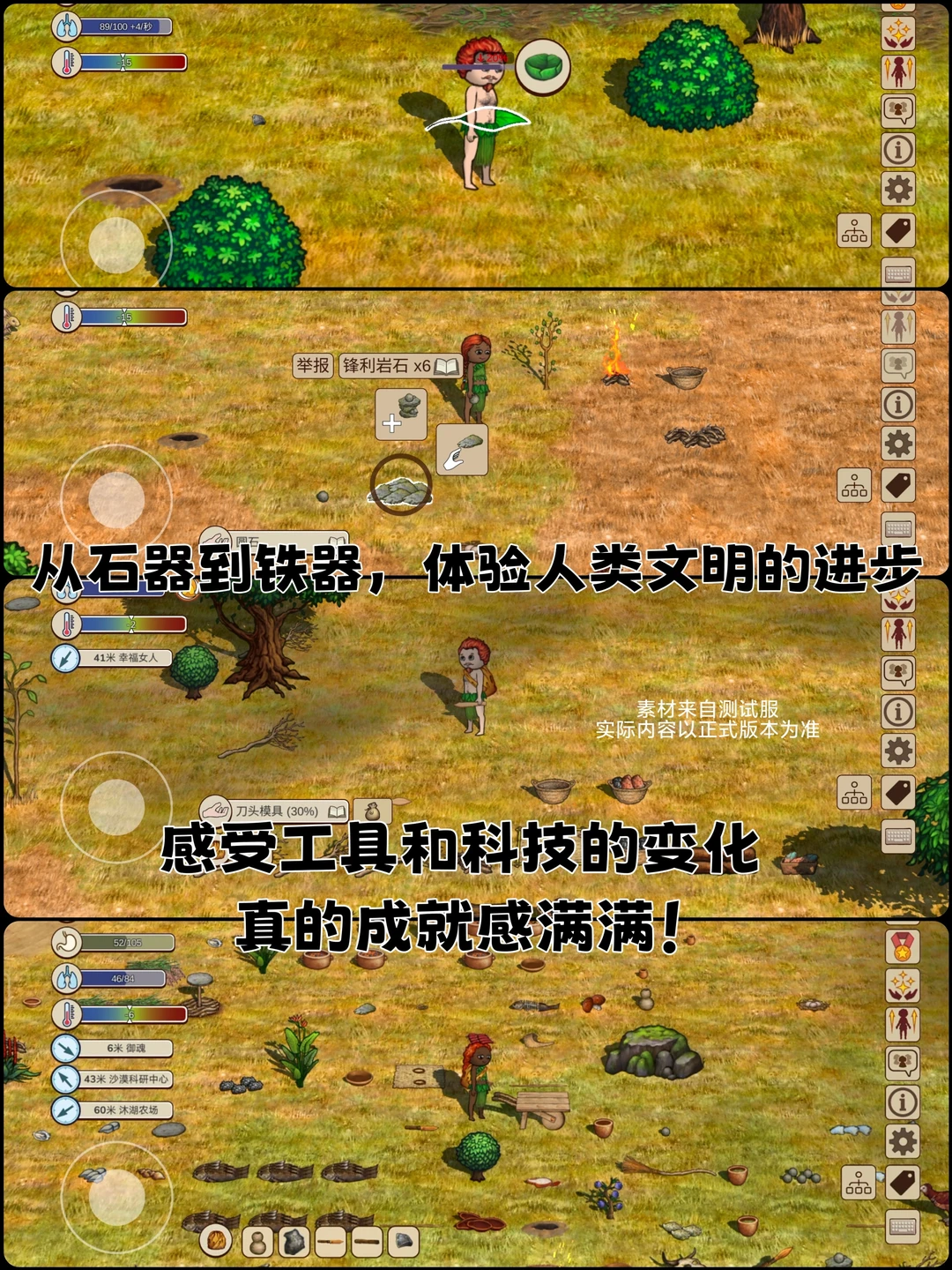 从石器敲打到铁器锻造,亲手体验人类工具进化史;种庄稼、养牲畜,沉浸式当“远古农夫”;在森林里捡树枝、河里逮鱼,原始生存那味儿直接拉满!甚至连建筑都是从茅草屋慢慢盖成部落城邦,这种从原始人开局到文明崛起的过程,也太有代入感了!