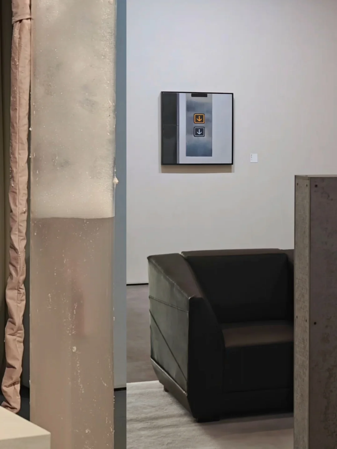 作品常通过独特画面处理引发对现实的反思。《室外》抽离场景元素表达未知孤寂;《光明通道》以白色背景体现都市人状态;《客梯》《窗户》以独特窗户形象暗示不安;《燃烧》以车喻人展现释放;《夕阳》抽离天空太阳突出无因之果。