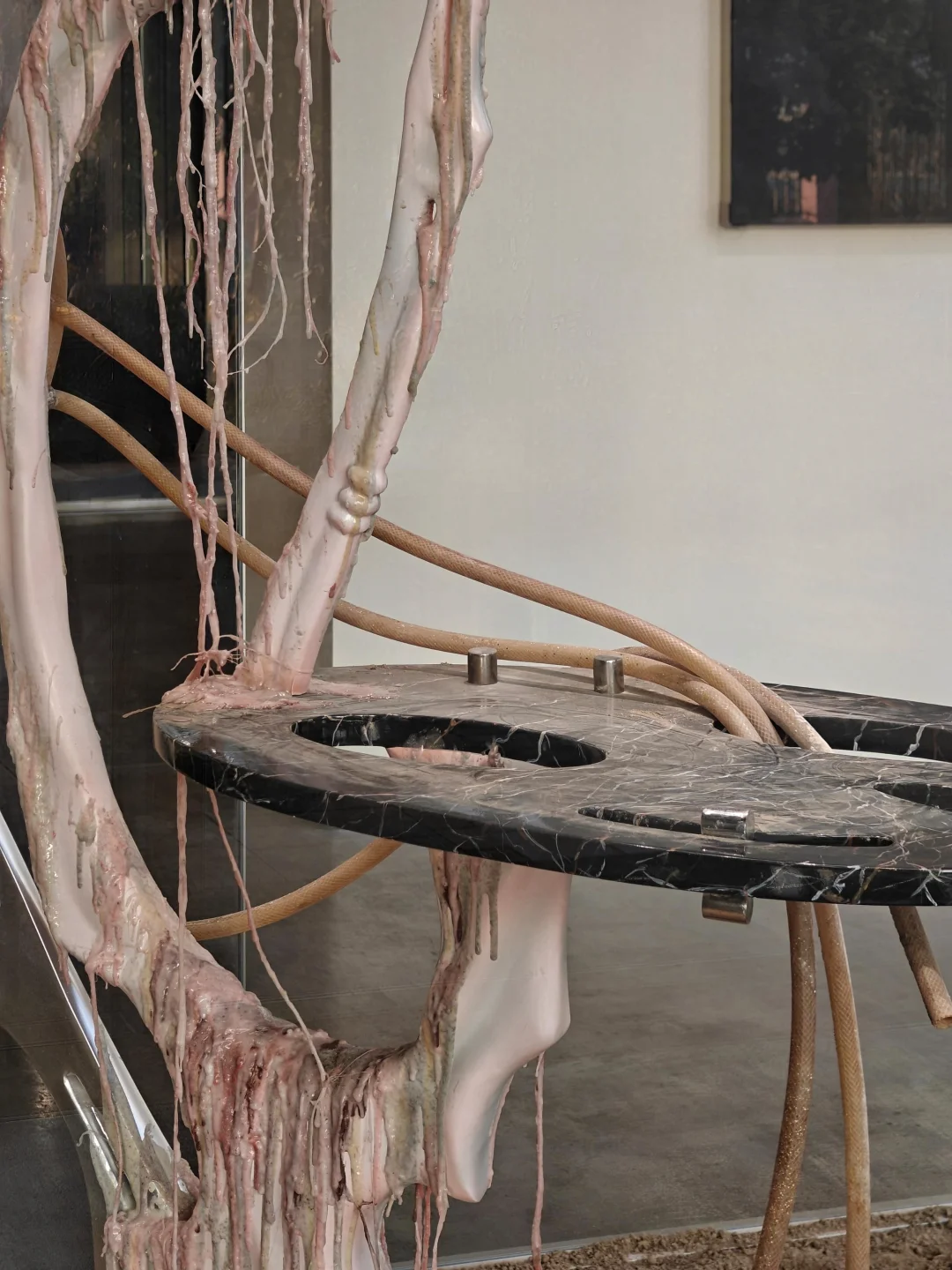 通过对臀部图像的描绘与“白桃”符号替换,批判当代艺术语言局限性,引发观众对符号意义的思考。