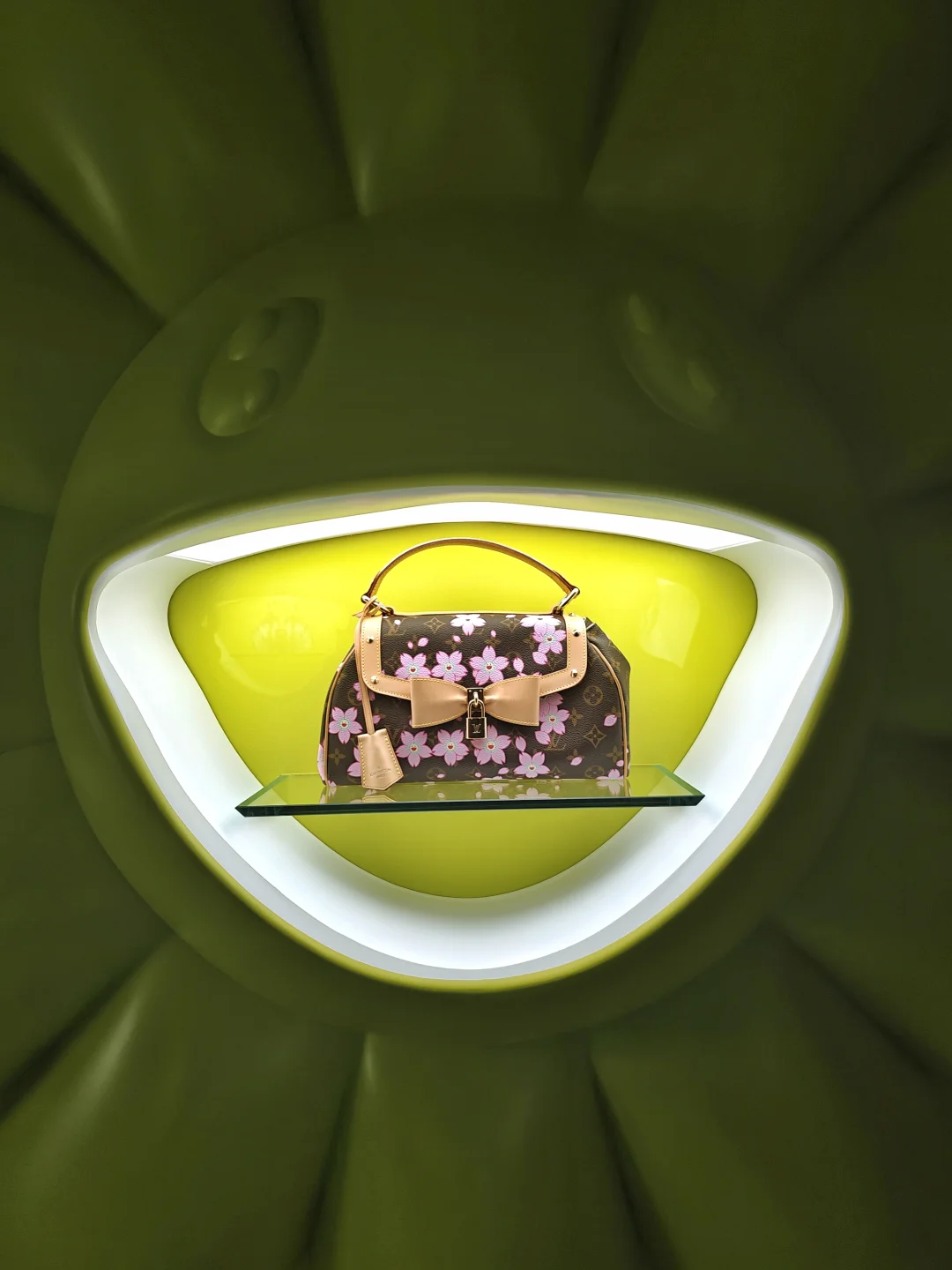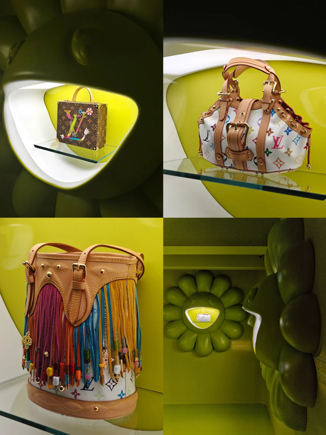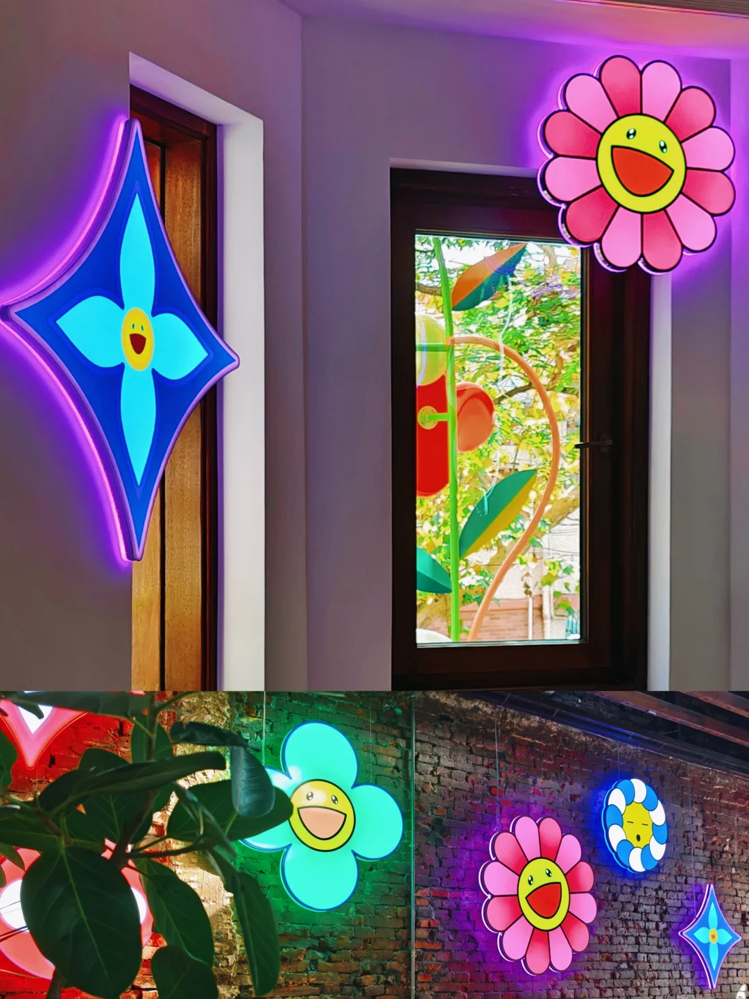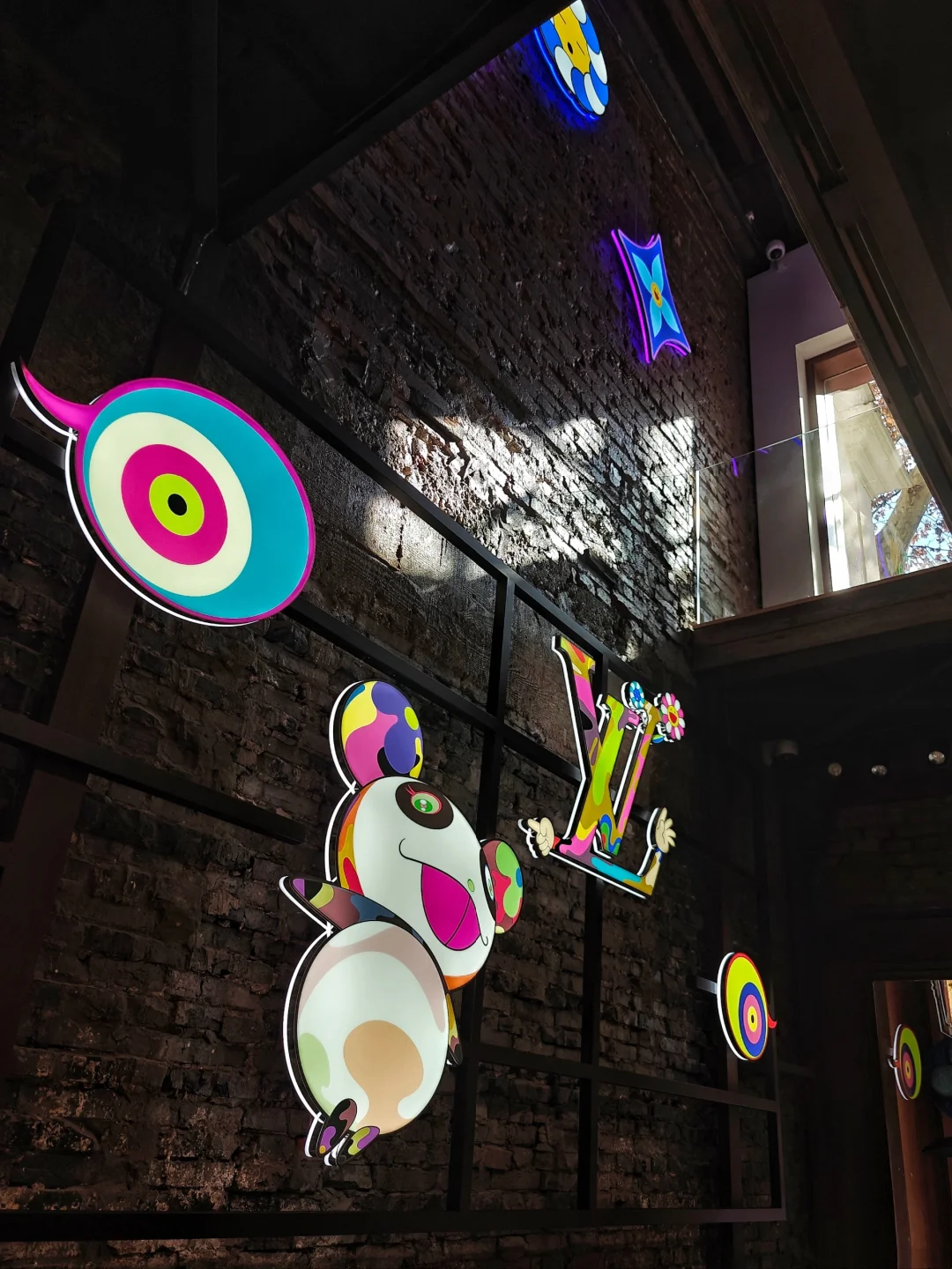 这里是主体空间,墙面上的老花有些是会转动的,挺吸睛。里面三层楼,展示这次联名的商品。也挺小的,放人慢,排队时间会比较久。不过二楼三楼都还有个小休息间。