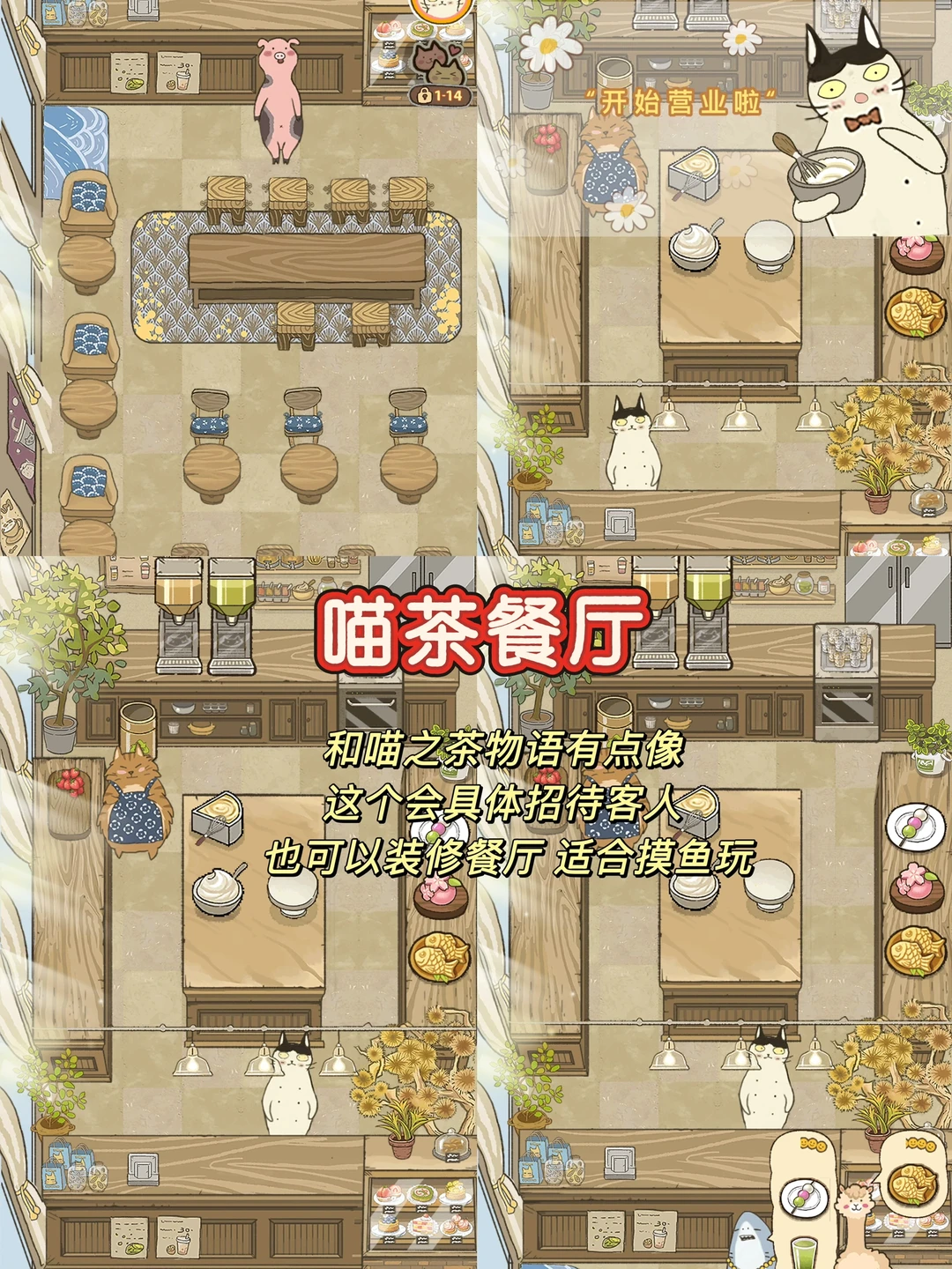 和喵之茶物语同一个公司的应该是,画风相同。经营餐厅,这个有具体上菜的过程,并且能装修店内环境,打发时间很不戳[点赞R]