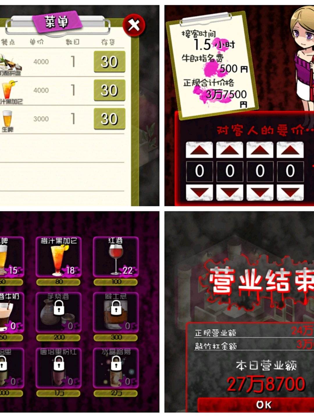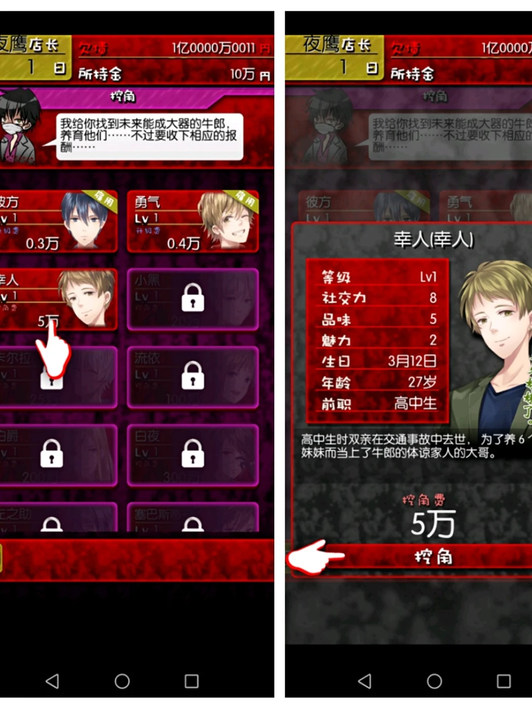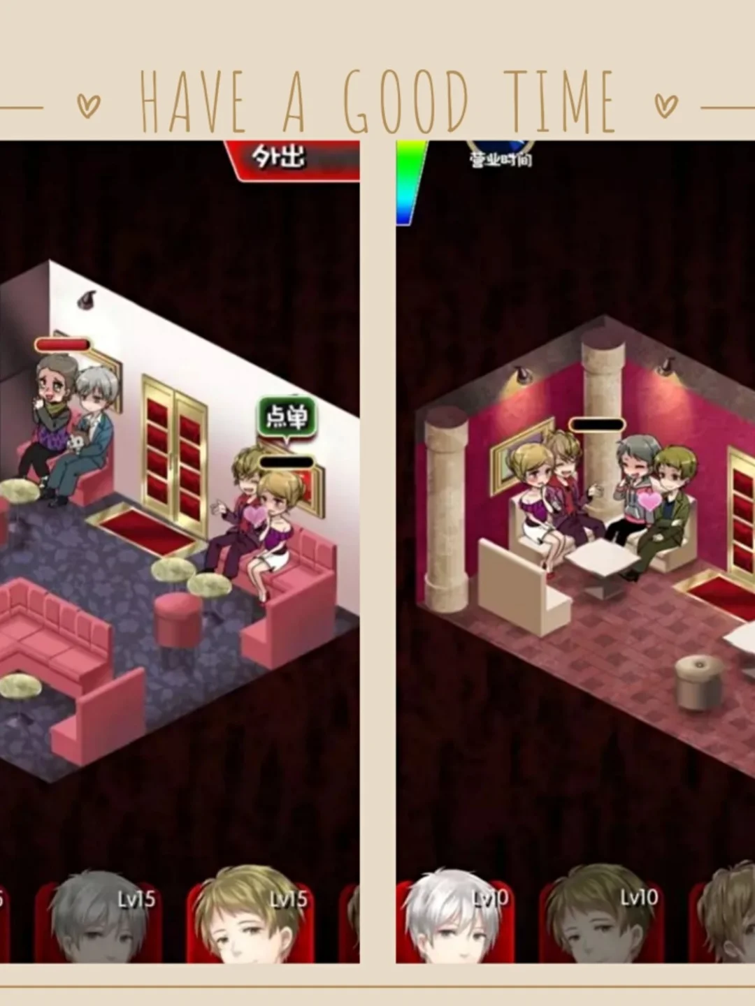 一开始顾客的类型很有限,只有宅女,运动衫女,女学生和职场女性的几类客人;牛郎的数目也有限,只有三个。