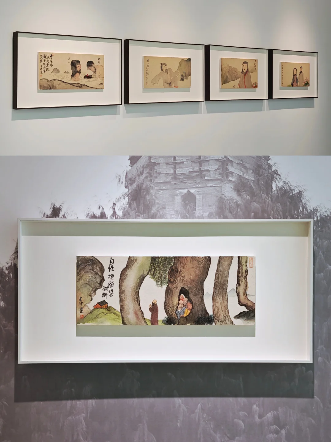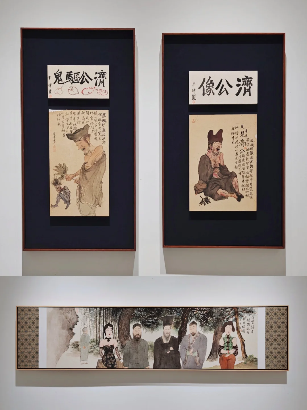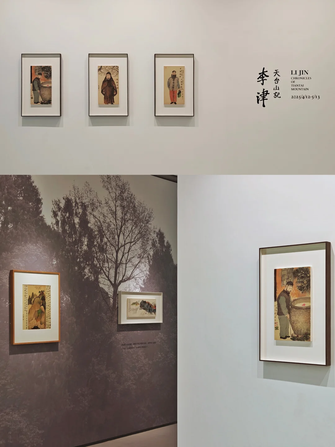 天台山记\n📆5月13日🔚\n🕙09:00-18:00 周一闭馆\n📍玉兰堂(上海馆) 北苏州路490号\n👨🏻\u200d🎨李津\n\t\n🖌️中国当代水墨艺术代表人物,以世俗生活题材颠覆传统文人画体系。早期以浓烈色彩描绘饮食男女的欲望图景著称,2010年后受天台山禅宗文化启发,转向空灵禅意表达。其作品融合传统笔墨与当代观念,通过人物、山水重构东方精神意象,展现对日常生活本质的提炼(家常的本质主义)与宇宙观的形而上探索。\n🖌️在当代水墨热潮褪去后的十几年中,大浪淘沙能能剩下的都是有真材实料的。\n🖌️三月刚去过天台山,来看这个展也算是有机缘。济公故里、唐代寒山与拾得隐居地、天台宗发源地,作为\"见山是山\"的心灵修行场域,天台山承载了禅宗文化与隐逸传统。\n🖌️艺术转型:从早期表现\"欲望迸发的饮食男女\"转向\"本真纯粹\"的精神表达,由外放转向内敛,呈现\"薄发\"与\"神定\"的禅修特质。\n🖌️除了罗汉、济公、和合二仙、僧人这些禅意形象,现场作品中依旧有不少早期饮食男女的形象时不时出现。画中的艺术家被美女、美食环绕,浸淫于世俗的欲望与享乐之中,木讷的神情却流露出与场景的疏离与自娱自乐的尴尬,似乎狂欢也无法掩饰个人精神中的某种孤独与伤感。\n\t\n💗关注我,每天带你免费看展💗\n
