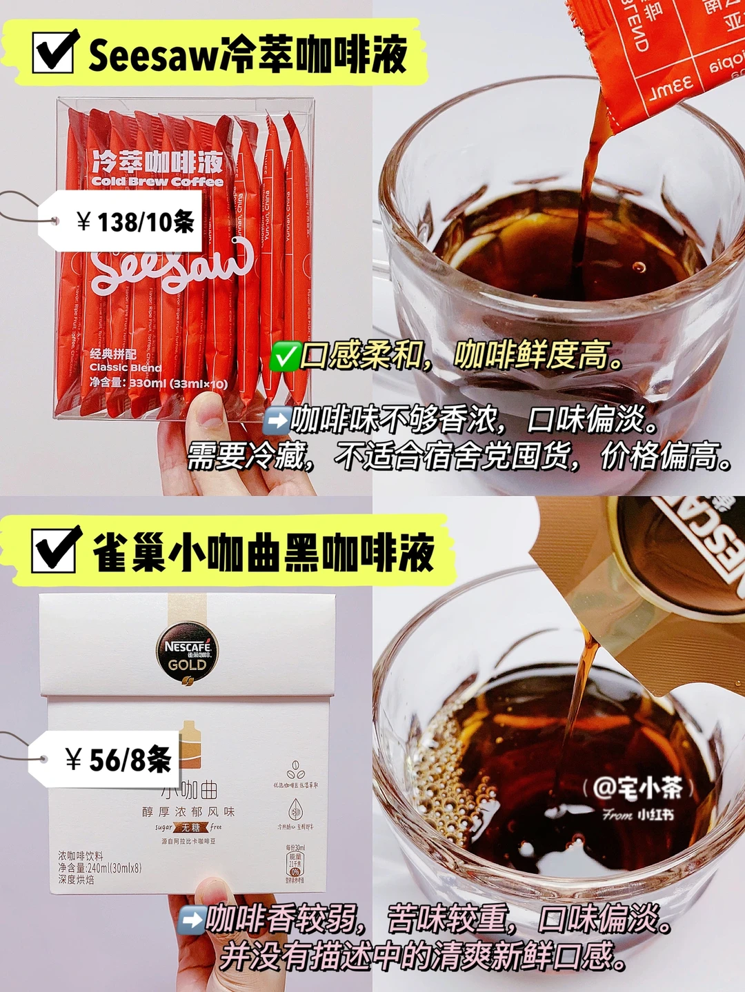 6️⃣口感柔和,咖啡鲜度高,但不够香浓,口味偏淡。需要冷藏,不适合宿舍党囤货。
