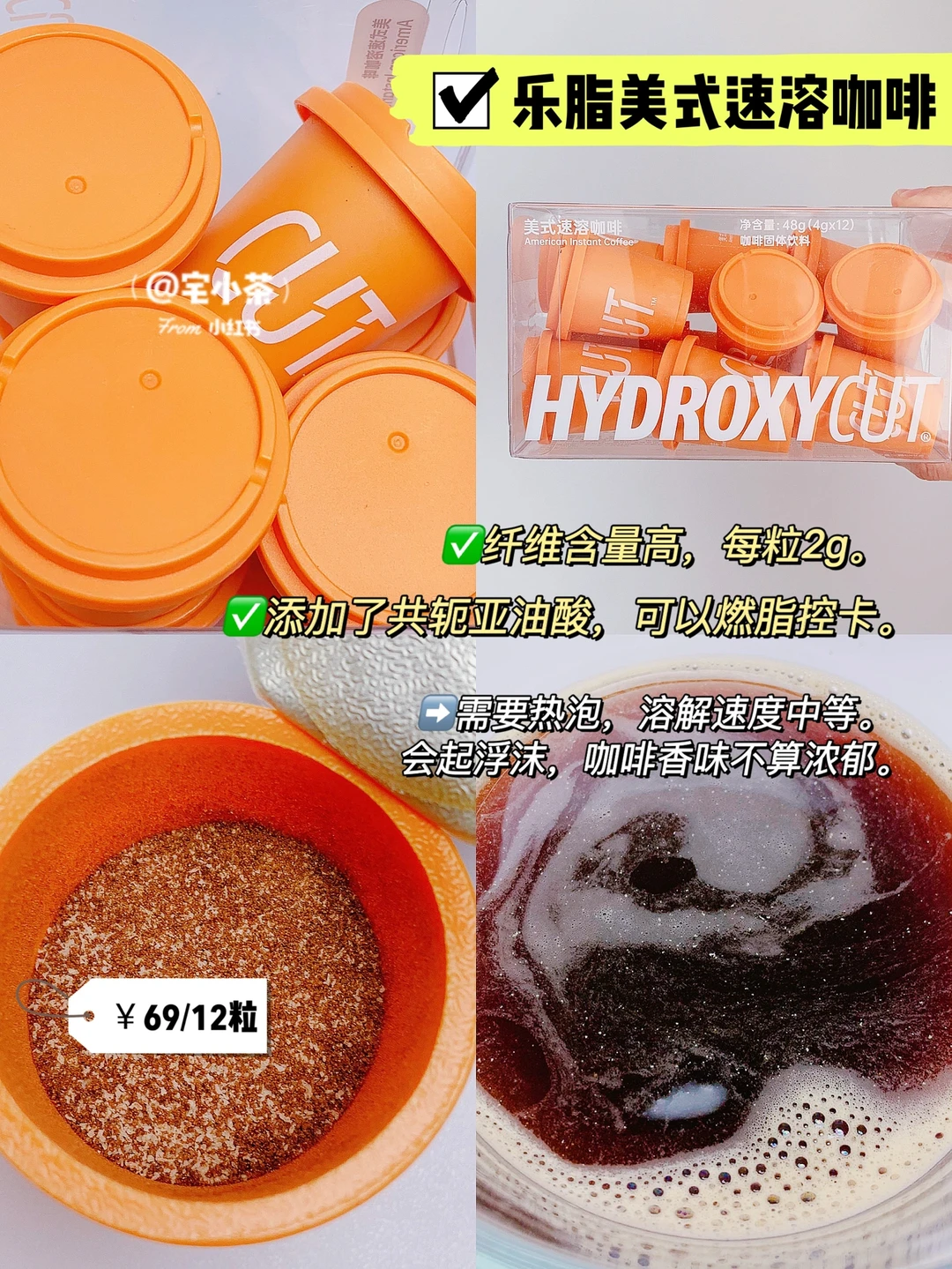 3️⃣亮点是可以燃脂控卡,但是溶解速度中等,会起浮泡,咖啡香味不够浓郁。