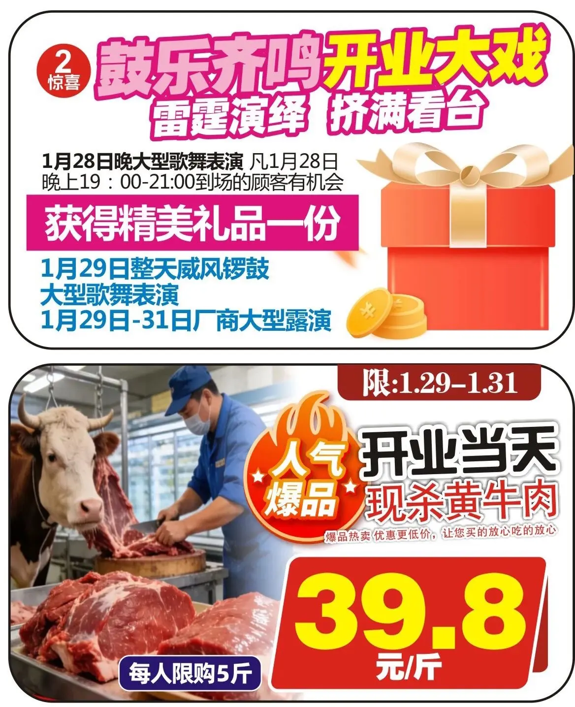 🎉悦万佳生活市集1月29日盛大开业啦! 全场低价狂欢,满88就能抽电动摩托车、888元购物卡🎁关注福袋送不停 100%中奖,还有5KG大米、品牌卷纸等好礼拿到手软! 现场鼓乐齐鸣超热闹,囤年货、抢优惠就趁这波,冲冲冲!🚀