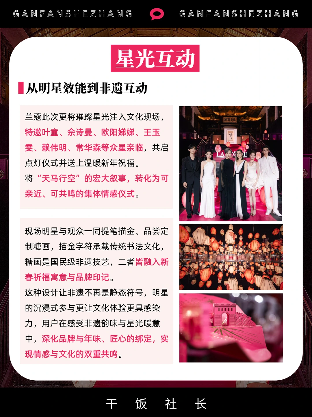 ✅更重磅邀请叶童、佘诗曼、王玉雯、常华森、欧阳娣娣、赖伟明等多位明星亲临现场,以点灯仪式点亮新春祈愿,送上专属新年祝福,为这场文化盛宴注入星光暖意;