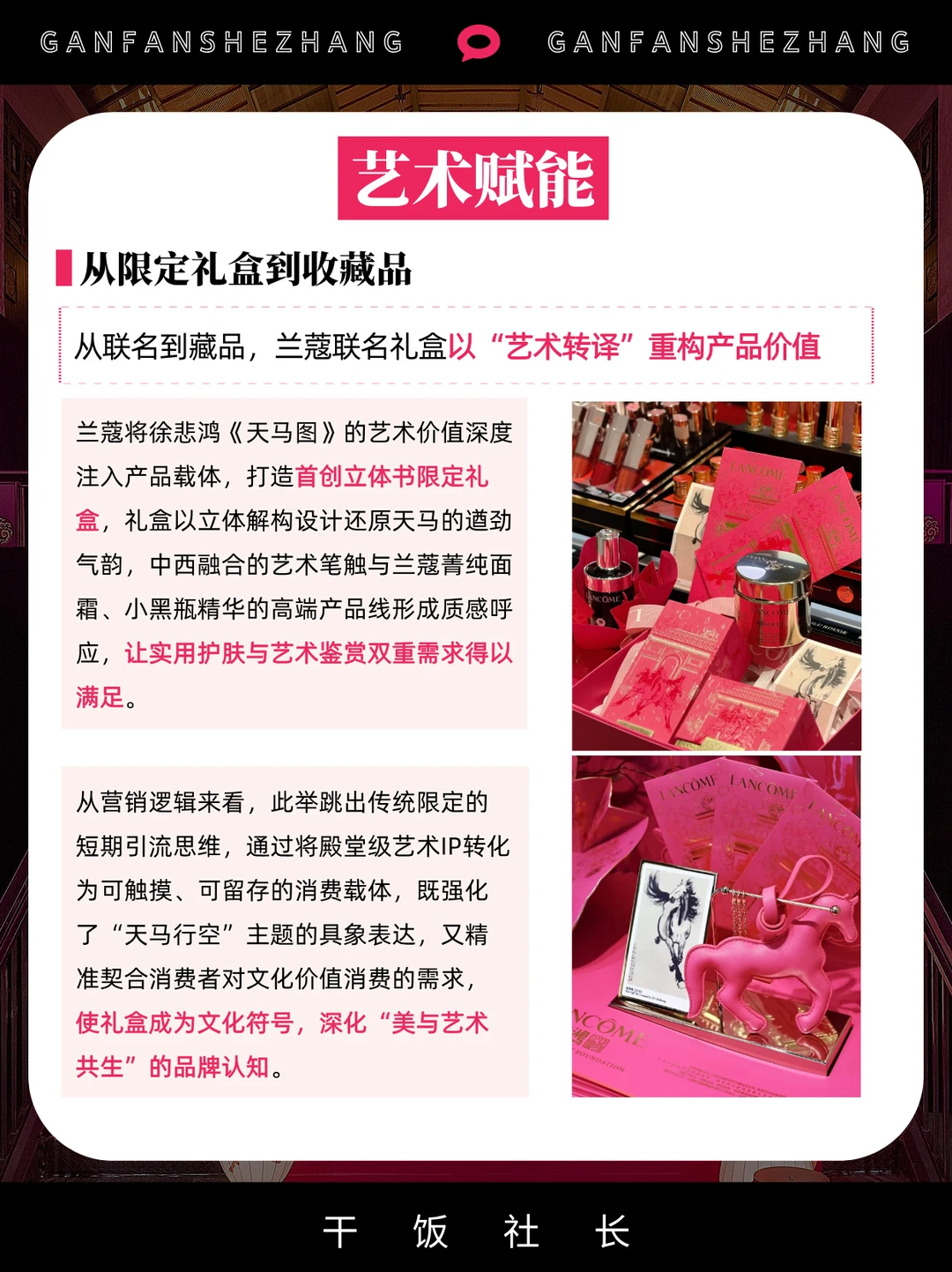 ✅品牌携手徐悲鸿艺术基金会,将殿堂级《天马图》深入融合到“天马行空”新年限定礼盒中,更通过包装上的设计巧思,让礼盒从限定升维为艺术收藏,强化品牌的文化叙事;