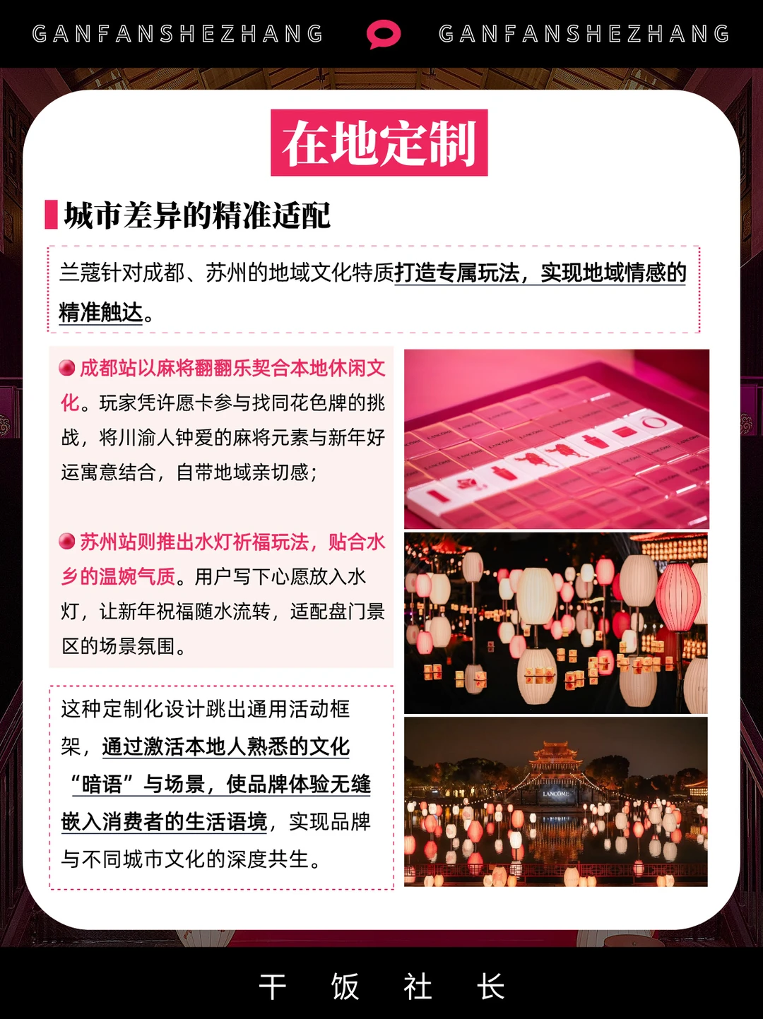 从成都的麻将互动到苏州的水灯祈福,兰蔻让艺术IP与地域文化深度绑定,既强化了限定礼盒的艺术价值,更通过贴合本地生活的沉浸体验深化情感连接,其核心成功密码在于以在地化融合激活文化共鸣,为CNY营销提供了“IP赋能+线下落地+在地深耕”的破局范式🎯