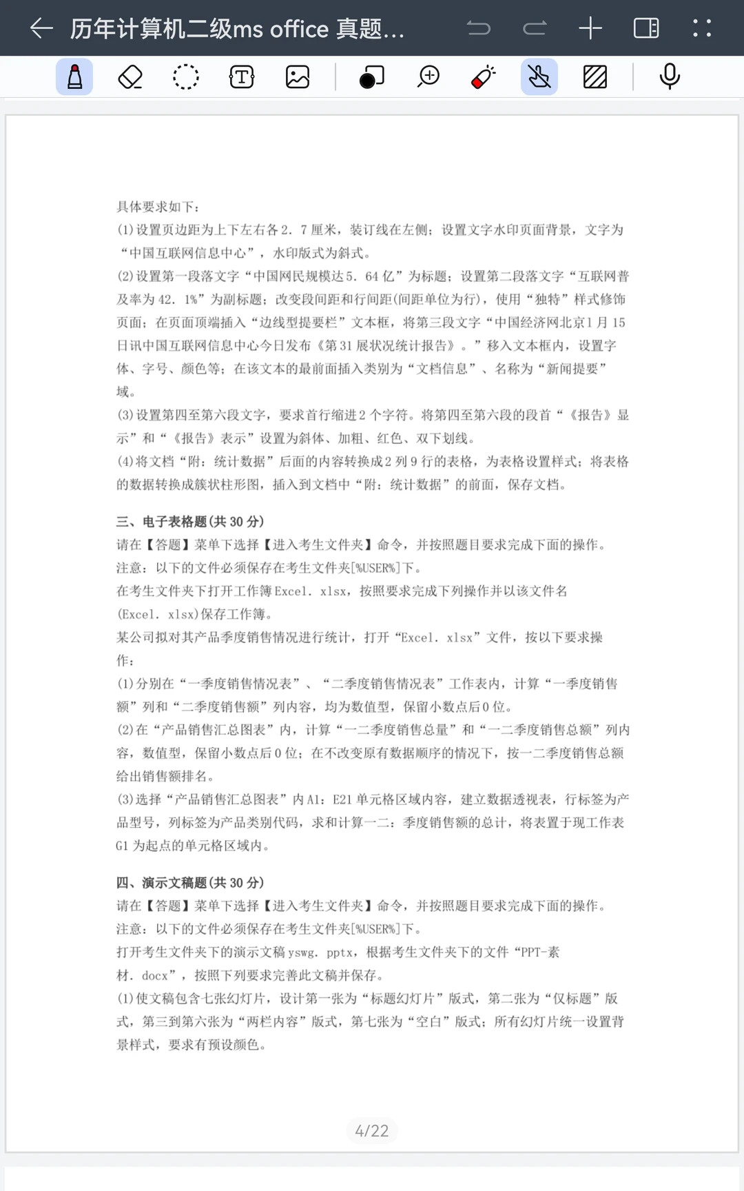 word 操作题的题量通常很大,10问左右。有的 word 题非常难,会考域、制表符等很冷门的知识或者是流程图这种繁琐费时的题目,所以考前复习一定要做好准备。