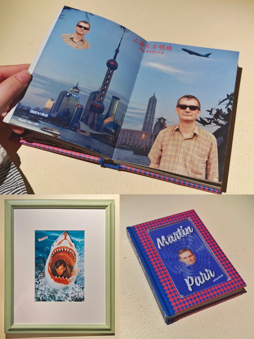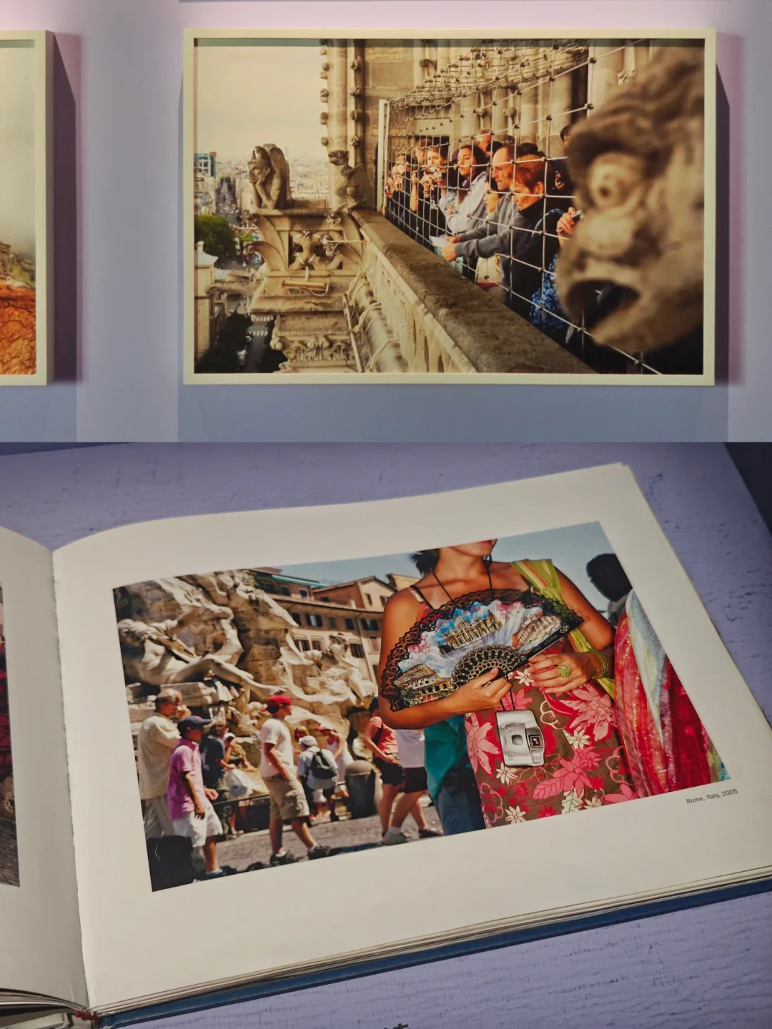 帕尔平等地嘲讽人类,自然也不会放过自己。他在旅行的间隙利用傻瓜式的设置和时尚的照片工作室,让异国文化作为背景完成了众多令人捧腹的自拍像