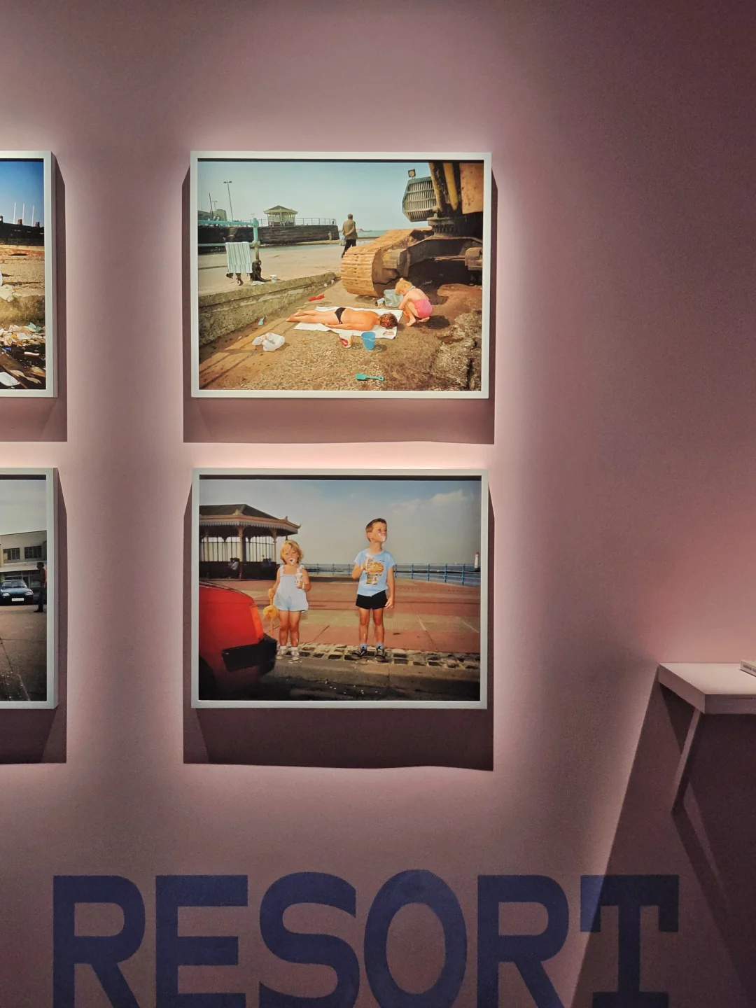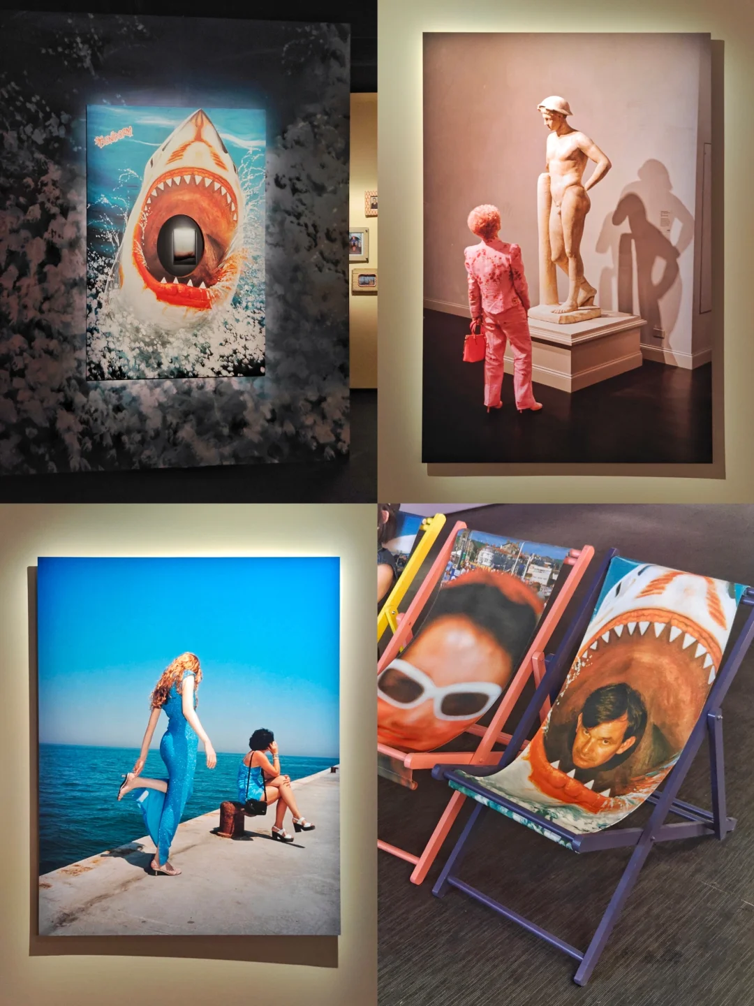 以强烈的色彩对比和戏剧性的场景,揭示海滨度假胜地的混乱与荒诞