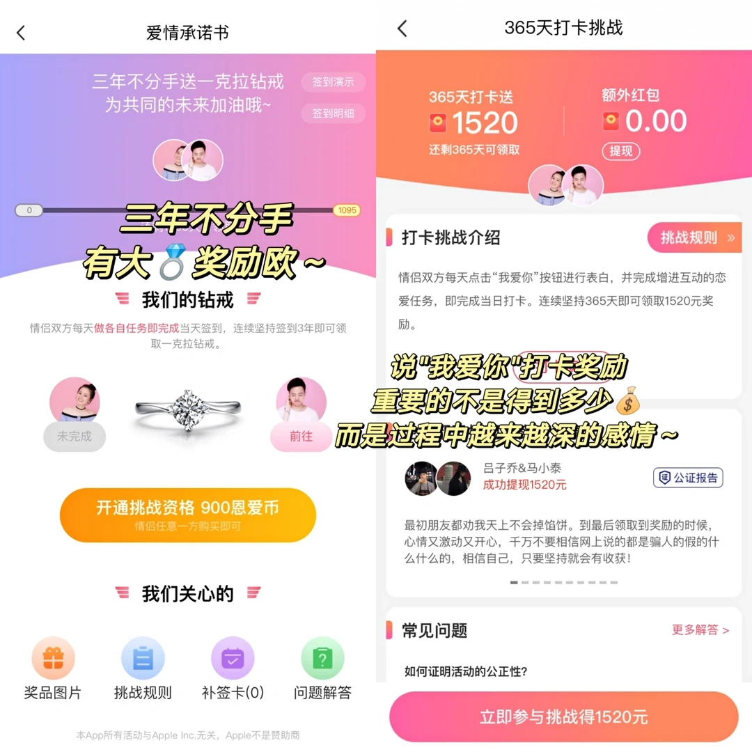 🔥还有365天说我爱你打卡奖励,坚持一年可得1⃣️5⃣️2⃣️0⃣️,很多情侣都拿到了欧~
