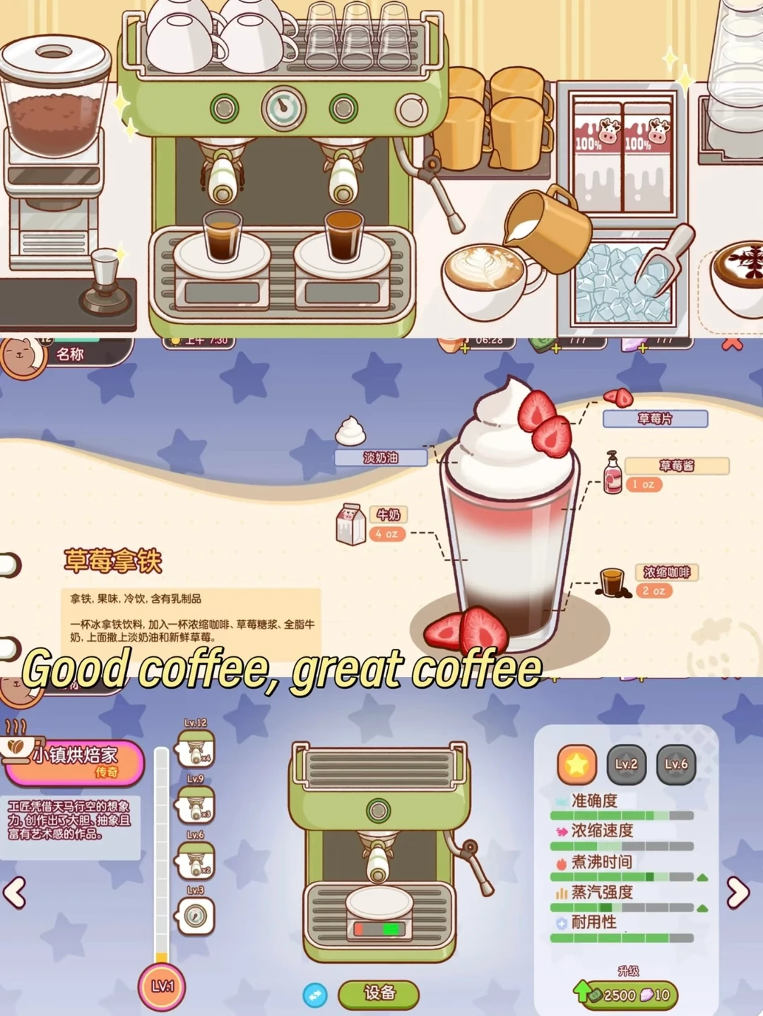 very very very 好玩的咖啡厅经营和做咖啡,非常细,画风就是很简约的风格,个人感觉比可口的咖啡更好玩,不用拖动 更方便