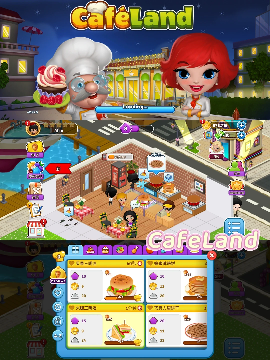 画风很古早,和My cafe一样都比较早期的咖啡厅经营游戏 很喜欢这个画风