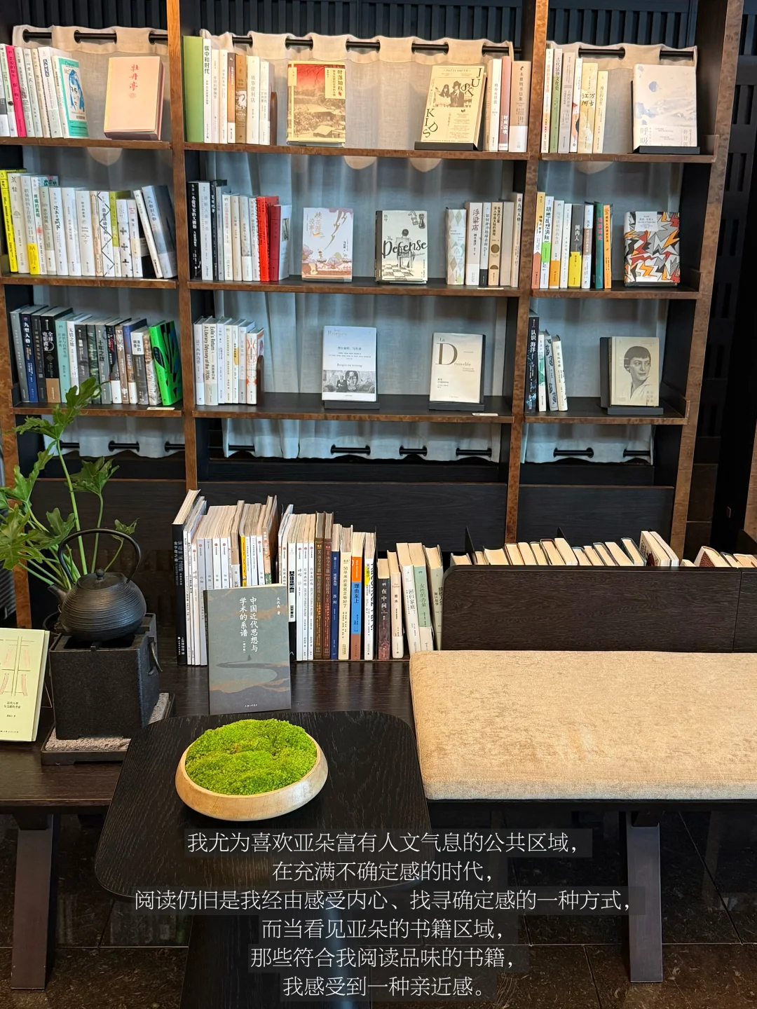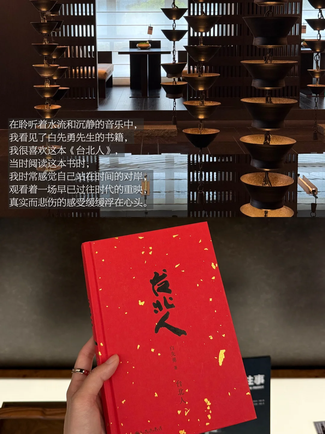 我尤为喜欢亚朵富有人文气息的公共区域,在充满不确定感的时代,阅读仍旧是我经由感受内心、找寻确定感的一种方式。在聆听着水流和沉静的音乐中,我看见了白先勇先生的书籍,我很喜欢这本《台北人》,当时阅读这本书时,我时常感觉自己站在时间的对岸,观看着一场早已过往时代的重映,真实而悲伤的感受缓缓浮在心头。