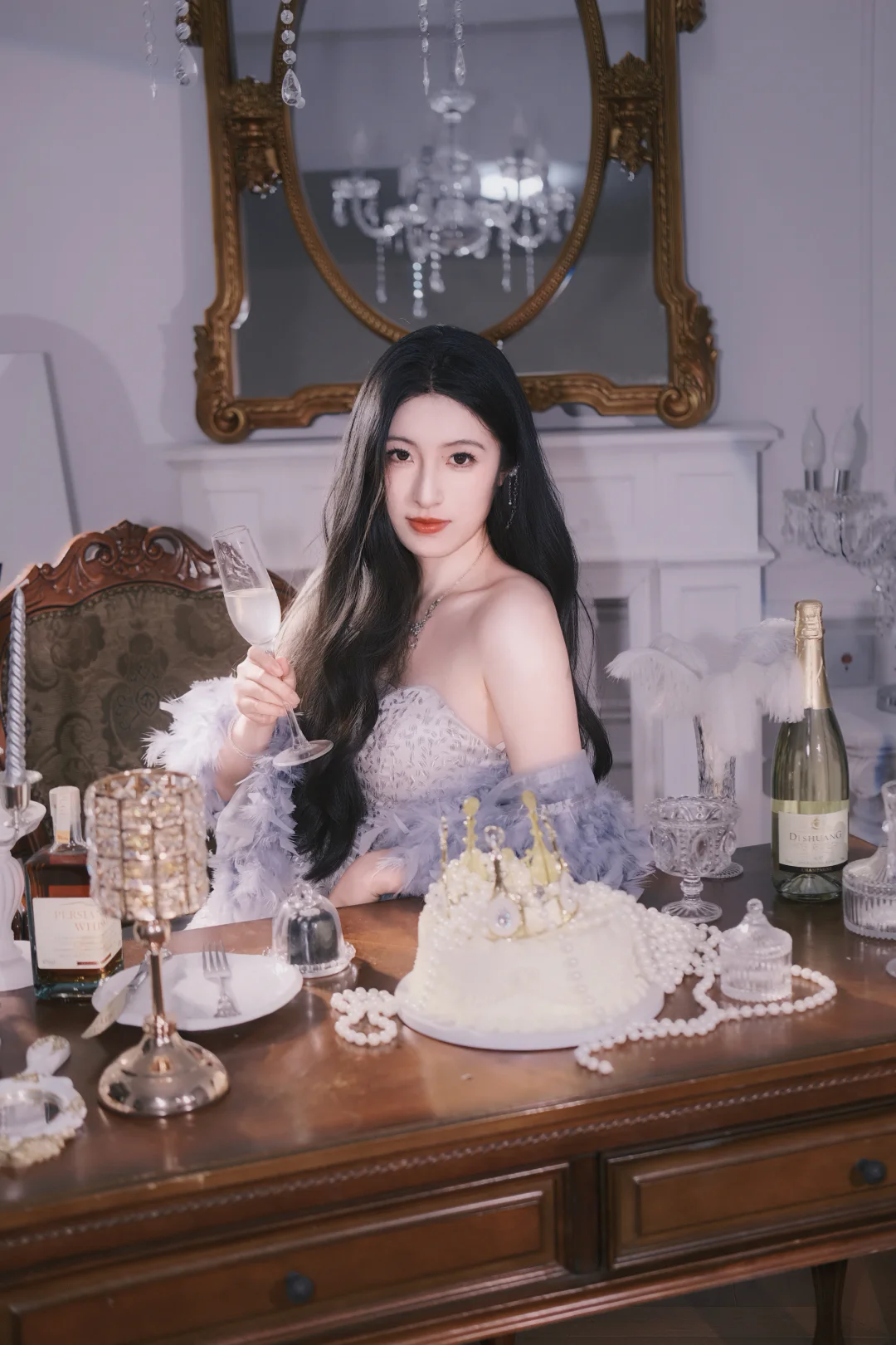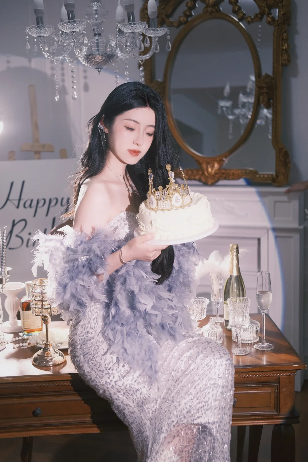 生日限定|法式公主的浪漫晚宴 淡紫色羽毛裙配鎏金复古场景 把生日的仪式感拉满到极致✨