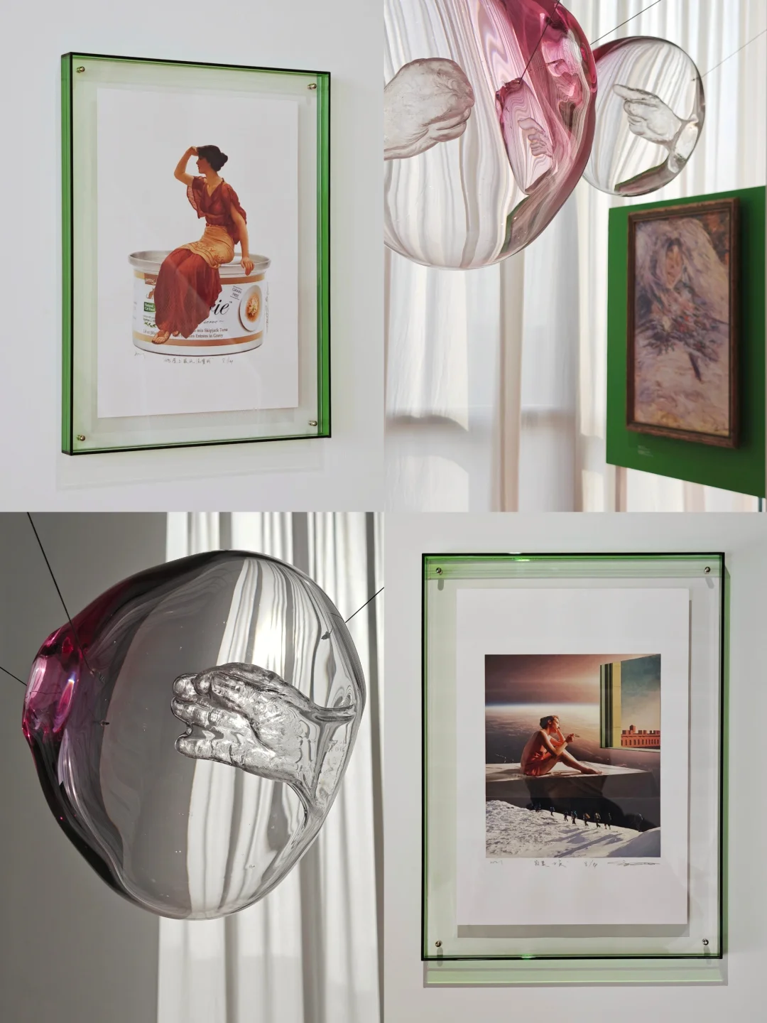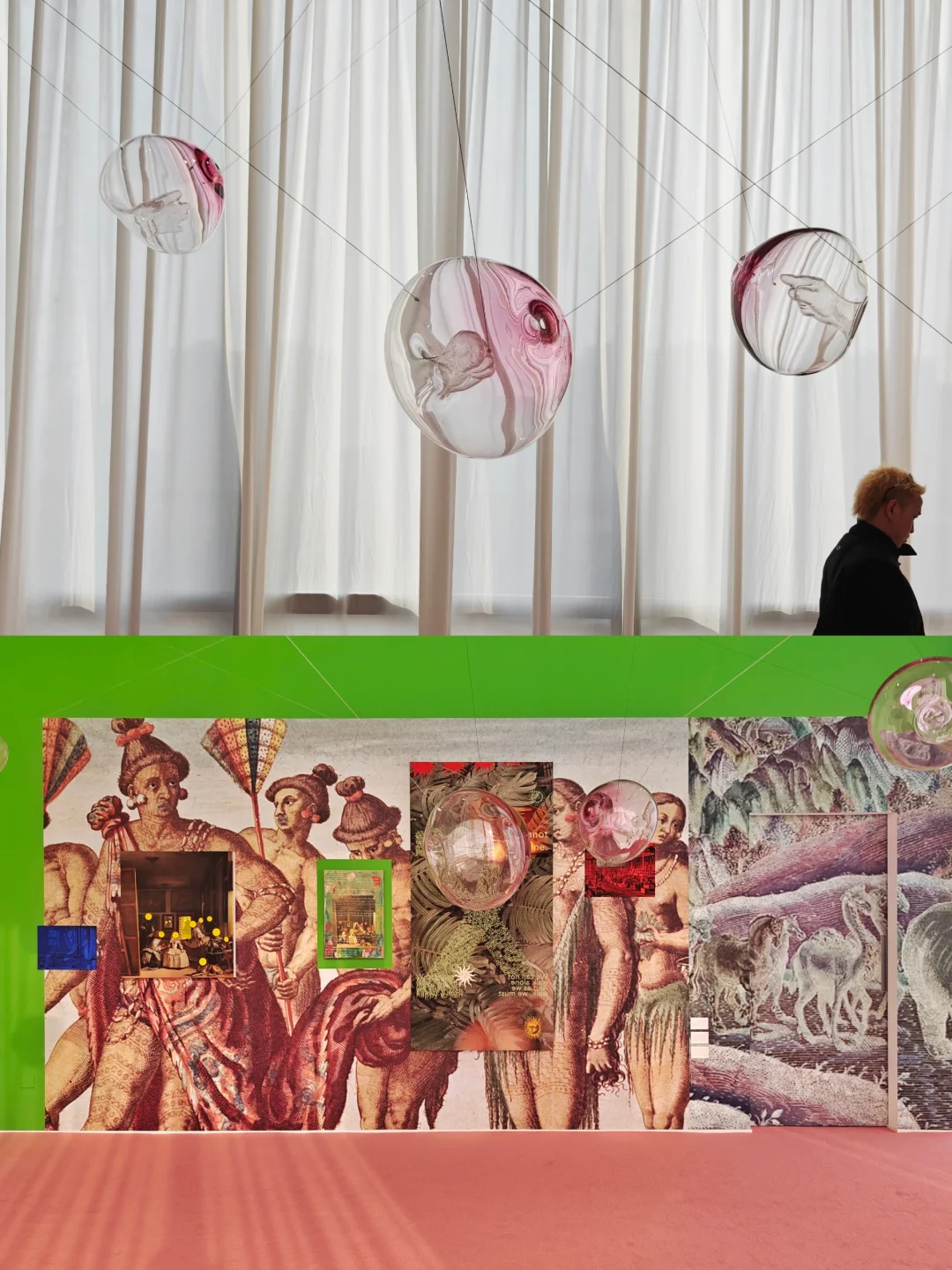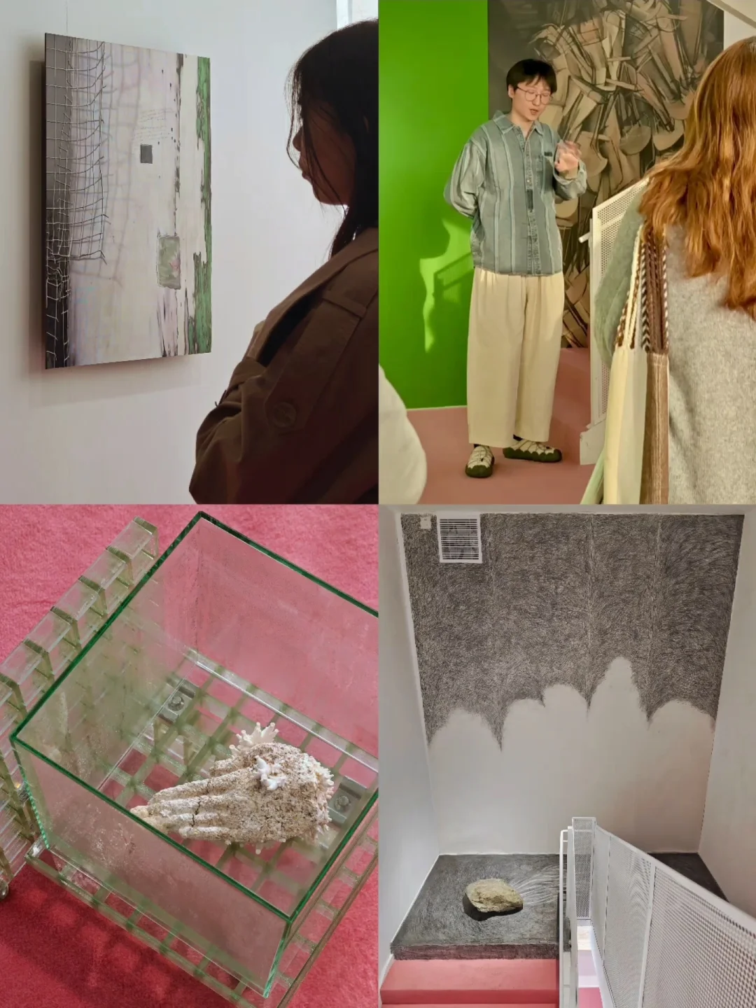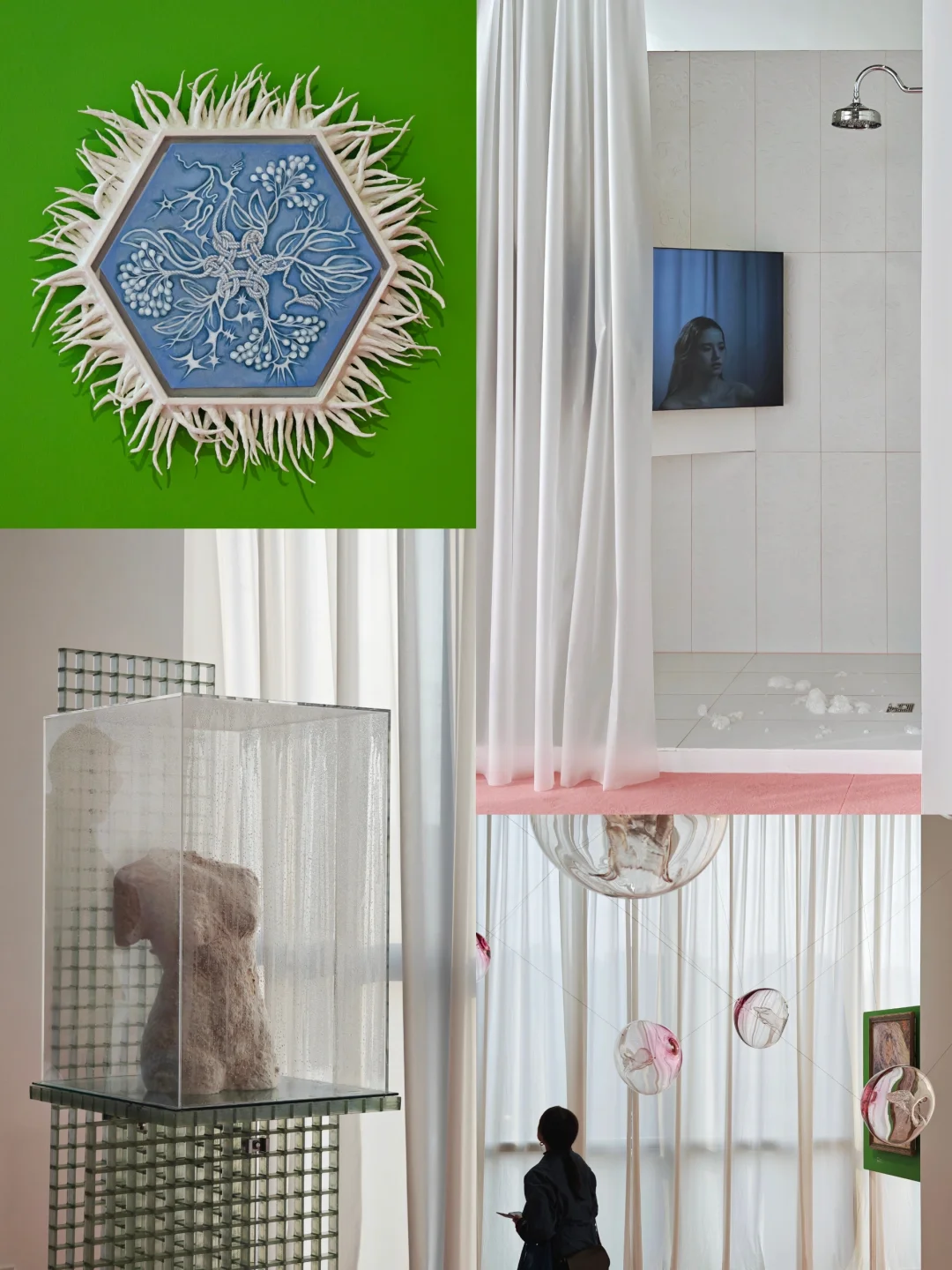 🌸布展应用了大量的暖粉与翠绿,让画廊原本有些冷感的白盒子也充满了春天的柔嫩与生命力,正如女性的气质一般美好。