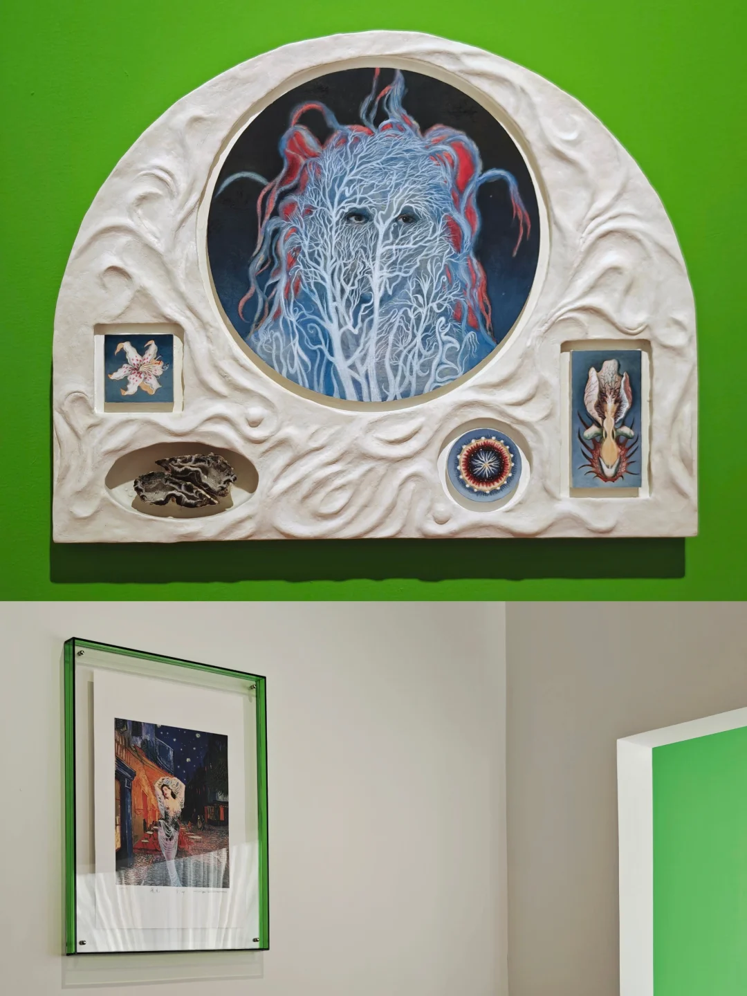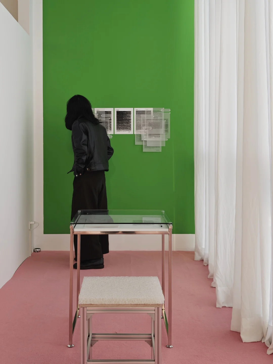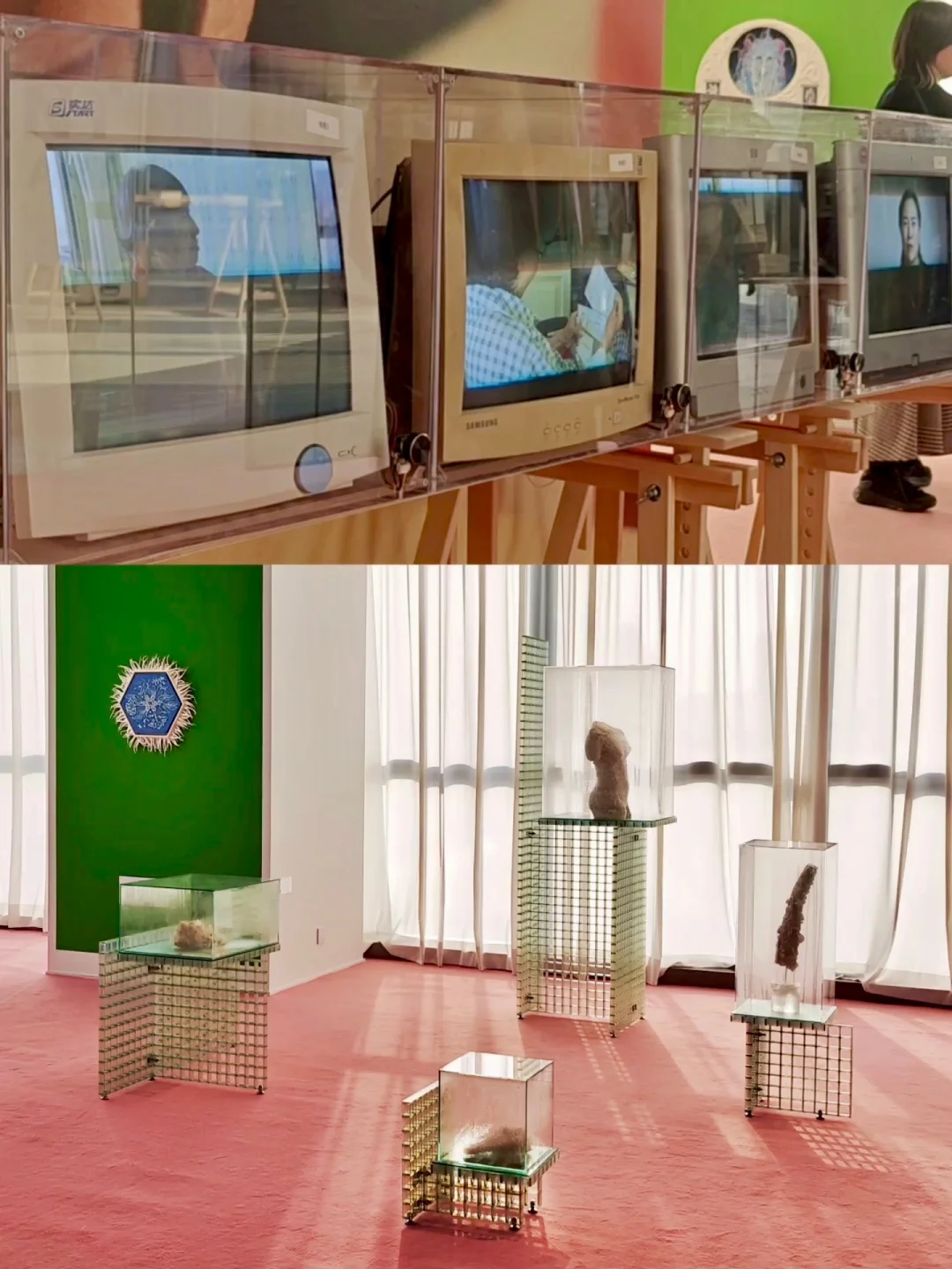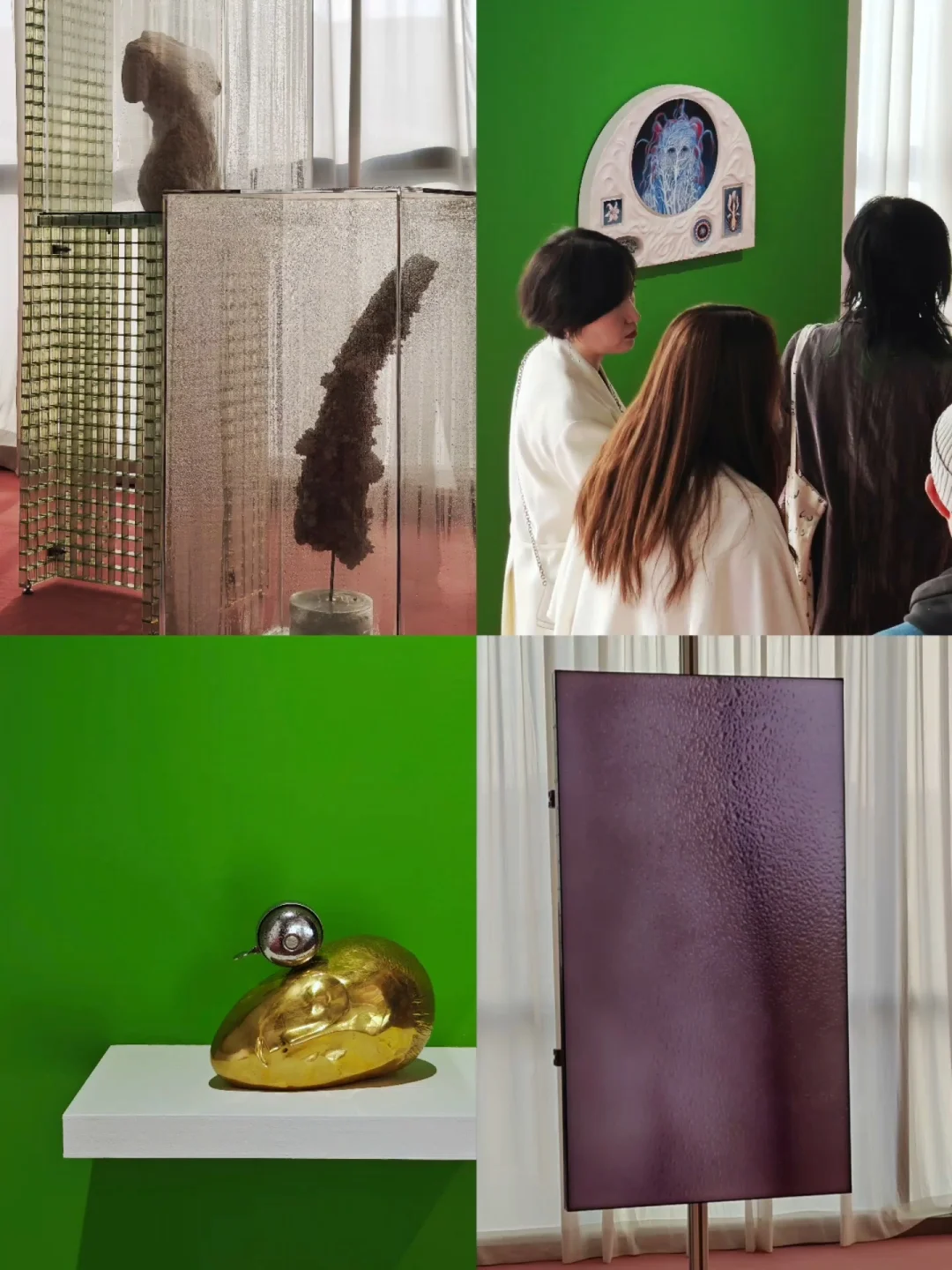 🌸布展应用了大量的暖粉与翠绿,让画廊原本有些冷感的白盒子也充满了春天的柔嫩与生命力,正如女性的气质一般美好。
