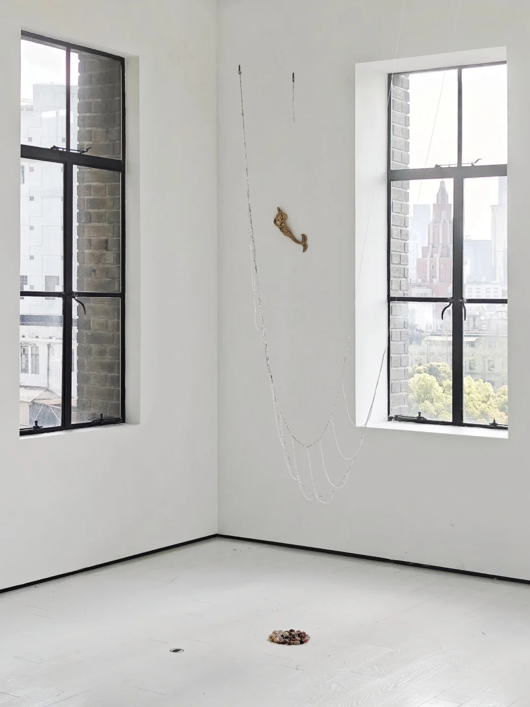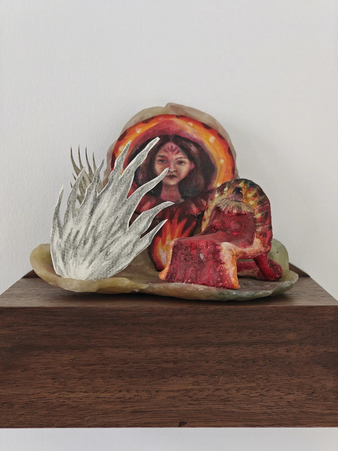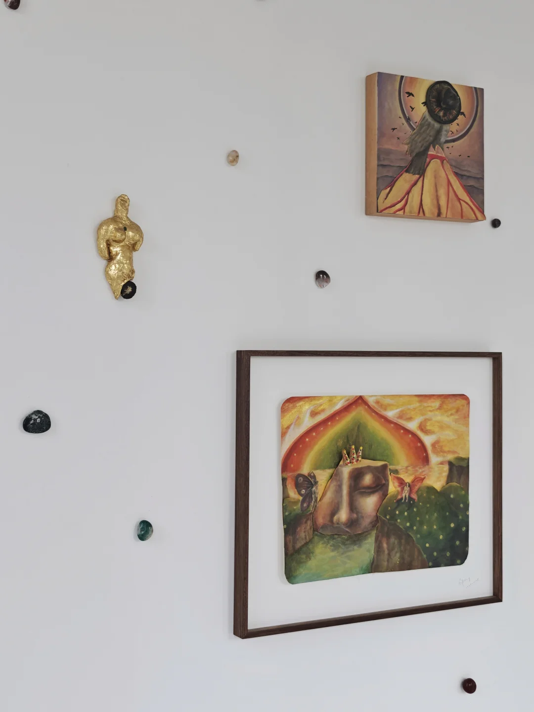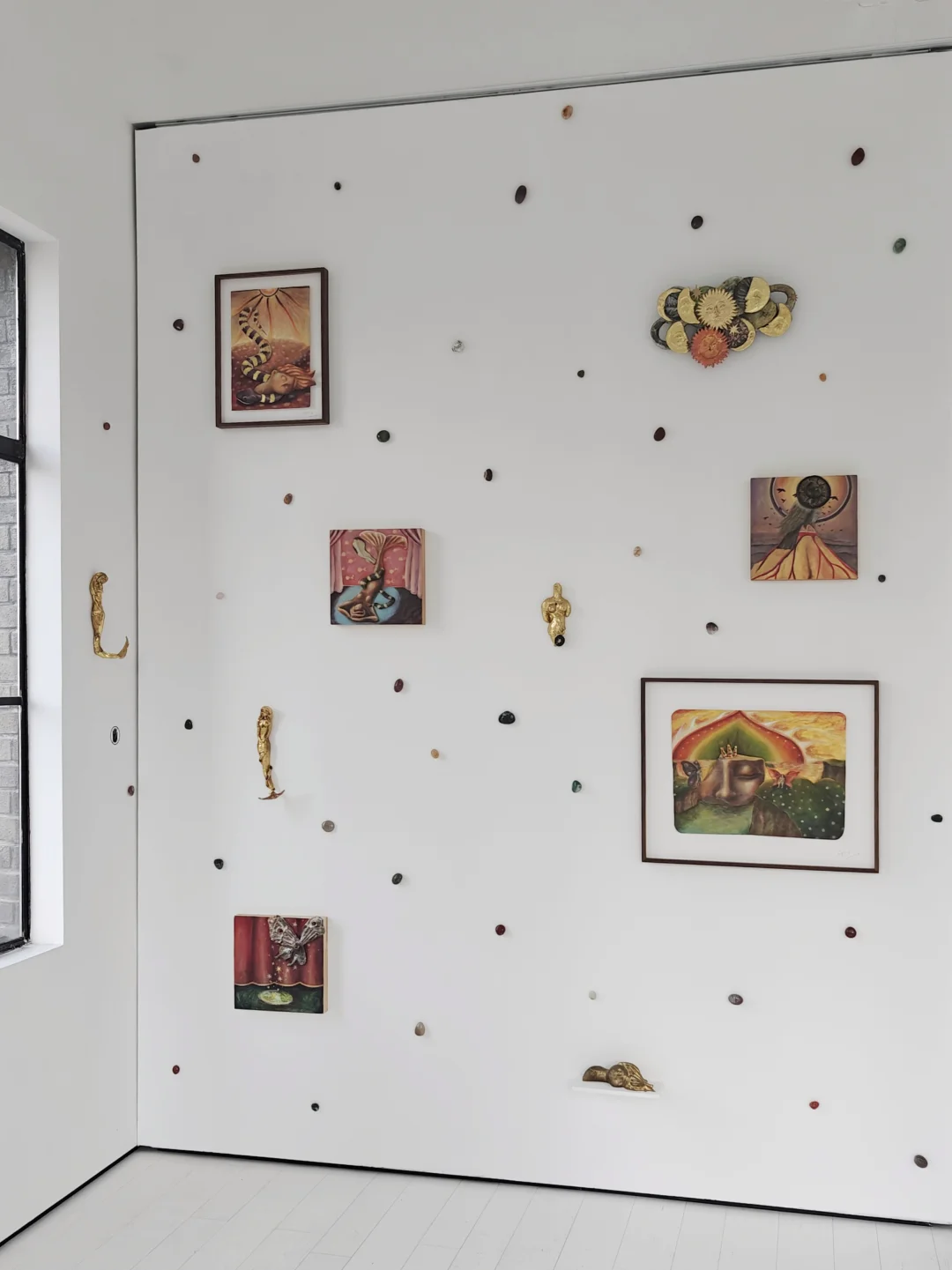 🖼️艺术家的24件新作,包括综合材料绘画与雕塑,运用粘土、金箔、丙烯、布料等多元媒介。