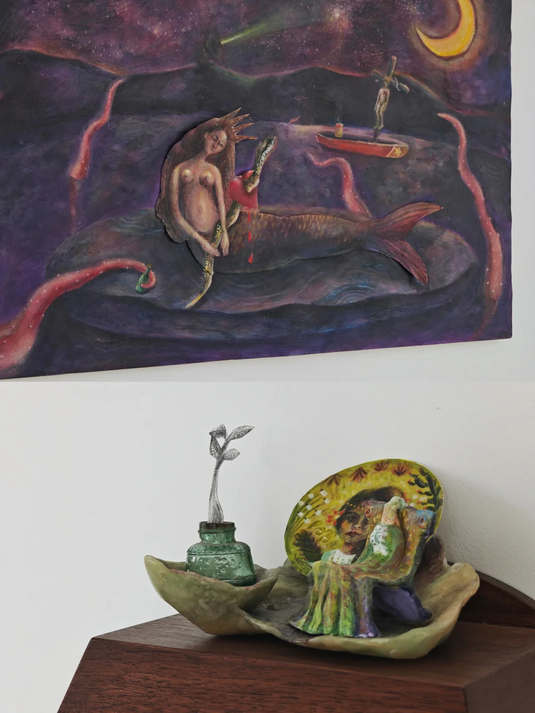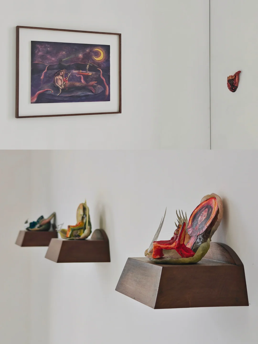 🖼️象征元素:🌙、🌞、🐍、🧜🏻♀️等,打破传统符号意义,成为叙事起点与视觉语言,构建神秘魔幻的“第三空间”。