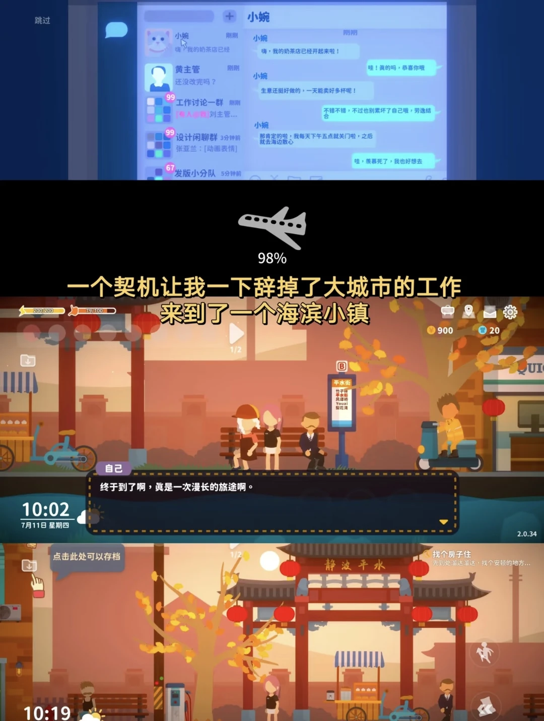 在大城市996的你,终于决定辞职和朋友去了一座海滨小城,体验放松的慢时光。在这里你可以体验各种职业:外卖骑手、服装店员、农夫👩🌾,后续还可以当潜水员以及出海捕鱼🐟。