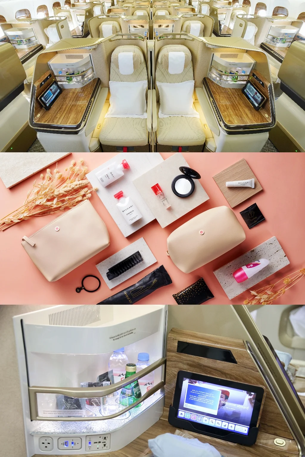 ❤️飞行途中还有不少小惊喜:空姐会拿来拍立得📷优先为带孩子的家庭记录机舱瞬间;娱乐系统强大到根本不无聊,大屏+好音质耳机(也支持自有耳机🎧),6500+电影音乐🎶游戏随便挑;洗手间备有护手霜,过夜航班更会送上宝格丽洗漱包,精致实用,谁能忍住不带走继续用~