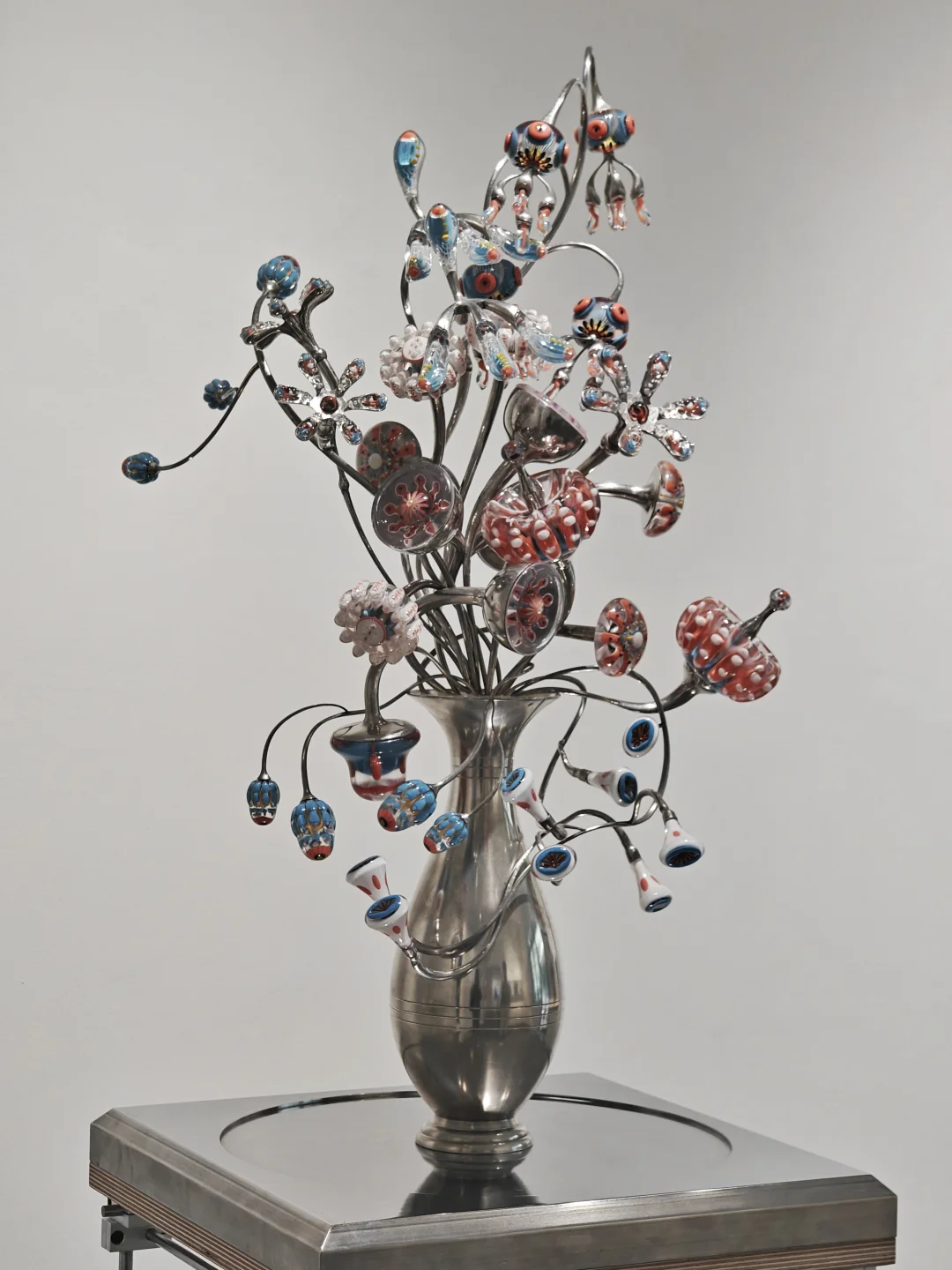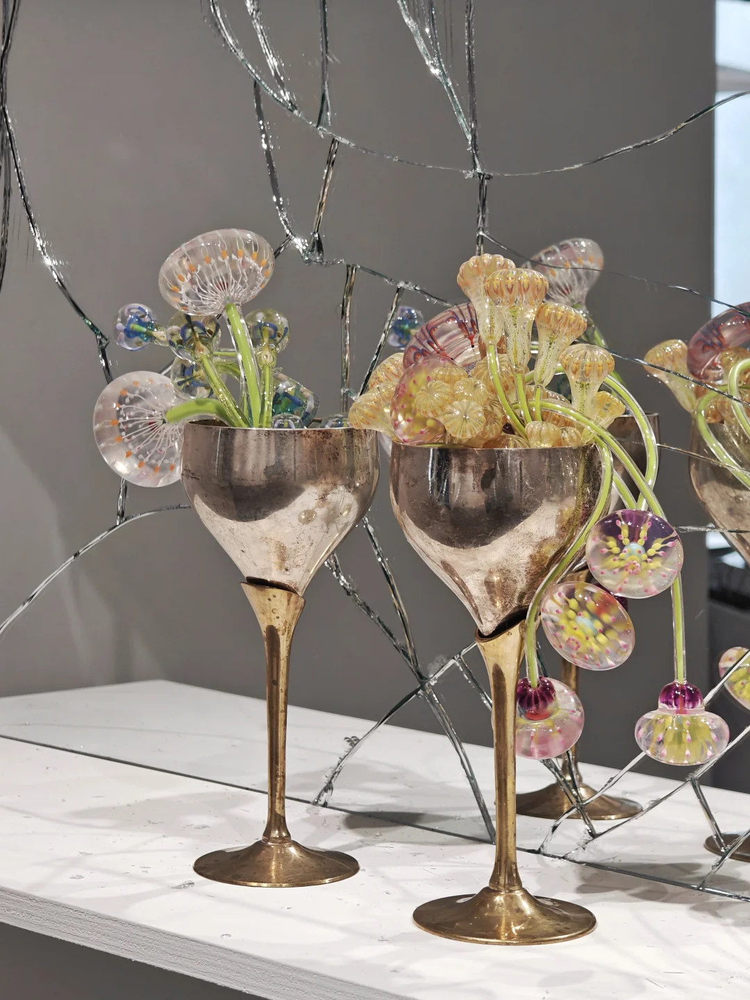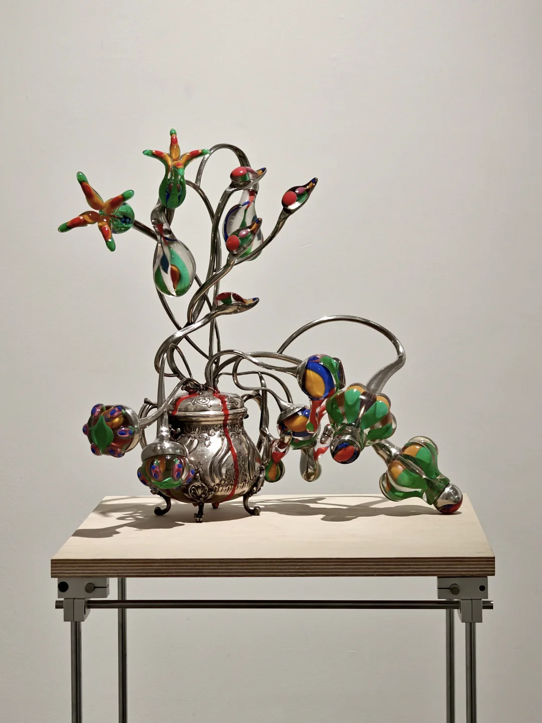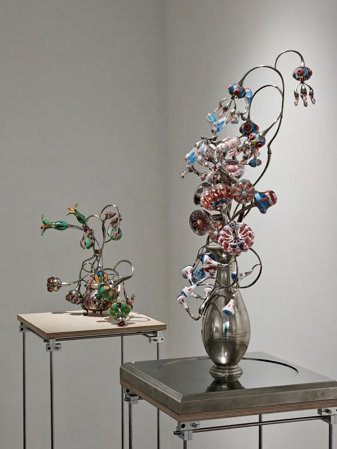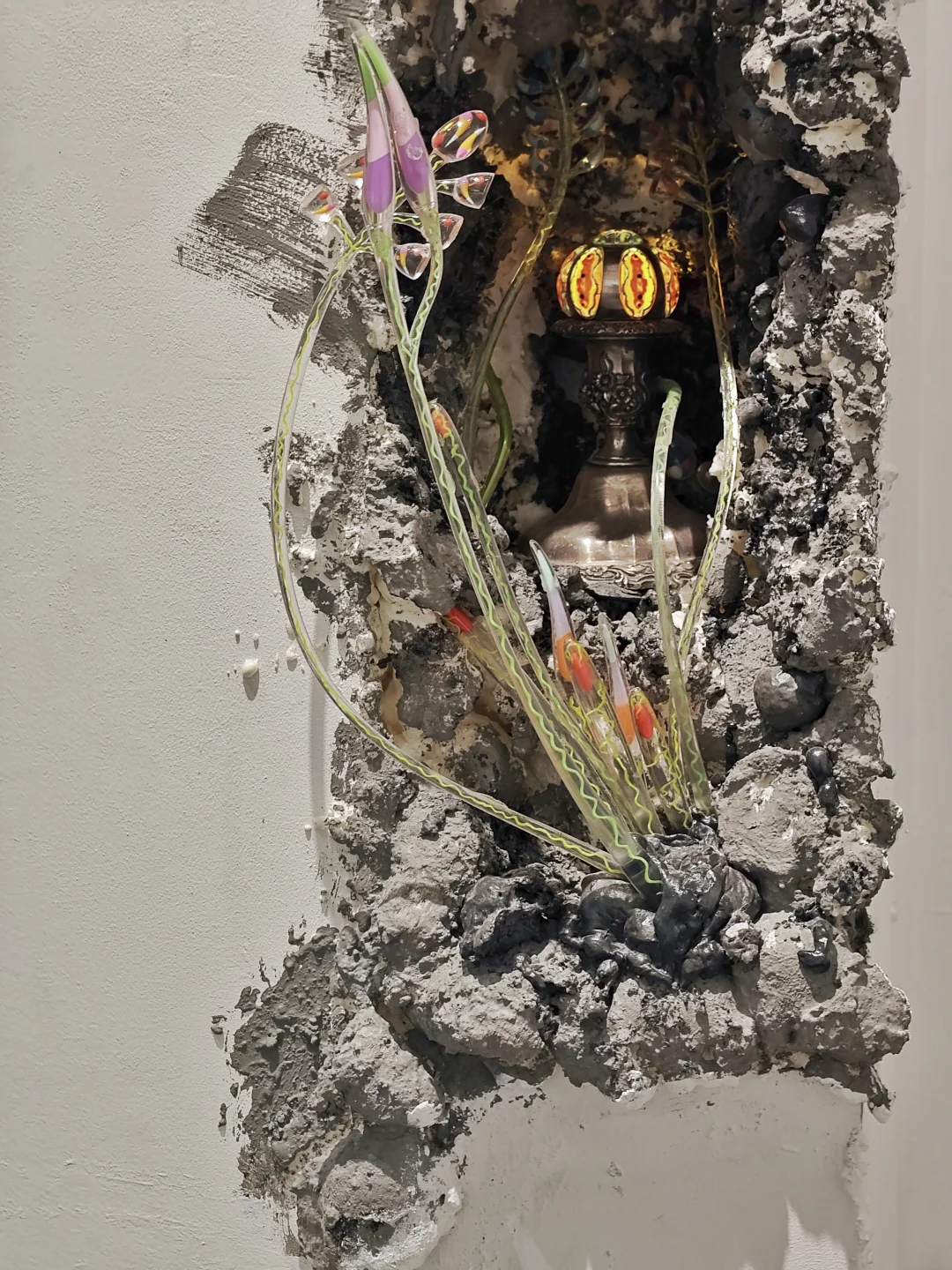 血管里有沙\n📆4月20日-6月1日\n🕙周二至周日11:00-17:00\n📍DOSE画廊 五原路[搜索高亮]212弄7号底楼花园\n👨🏻\u200d🎨吴逸飞|顾忠升\n\t\n🖼️通过\"有机生长\"与\"无机现实\"的辩证关系,探讨硅基文明时代的人类存在状态。标题\"血管里有沙\"象征人类机体已渗透非有机质,暗示无机生长在无意识中早已开始。\n\t\n👨🏻\u200d🎨吴逸飞\n3D打印技术+现成品=\"无机植物学\"臆想生物实体化\n👉花瓶是铜镀银的现成品,3D打印的部分乍一看还以为是吹制玻璃,真的很像从金属的瓶体中“长”出来的“花朵”。整体复古的氛围让我联想到蕞喜欢的1960年代科幻经典Star Trek中的硅基生物。\n\t\n👨🏻\u200d🎨顾忠升\n水泥材料+现成品=“旧状态”流动到“新状态”的中间形态凝固瞬间\n👉同样是无机物,水泥材质中嵌合入彩色的高尔夫球和瓶盖等现成品,像是外星沙漠中的有毒植物,又像放大了亿万倍的微生物模型,视觉冲击力拉满的同时有点密恐不友好。\n\t\n💗关注我,每天带你免费看展💗\n