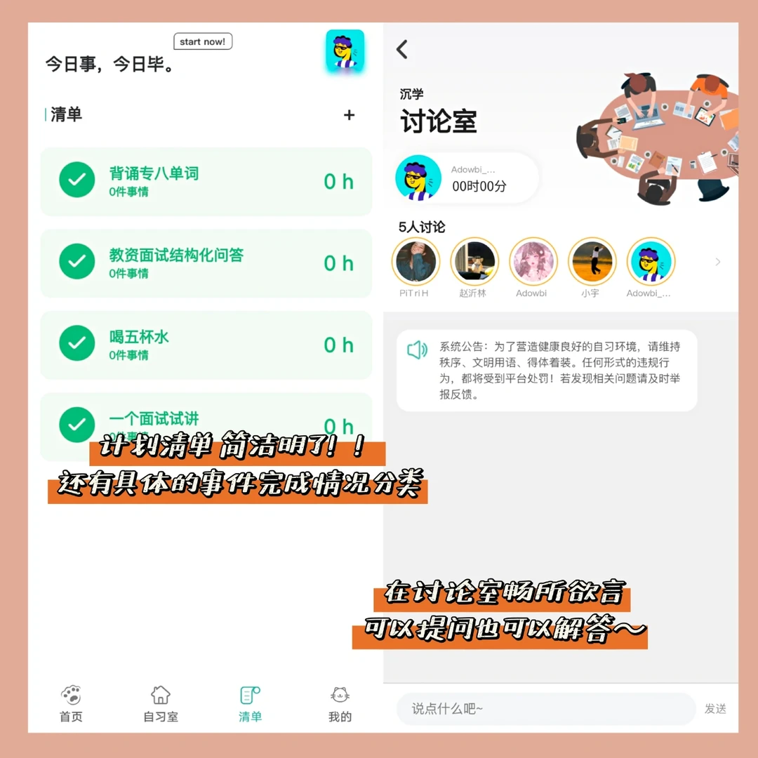 🔅App : Bidow - *线上自习室 你的学习之旅将不再孤独~* - ☁️纯净无广 界面清新简约 可提升专注力 ☁️多元化自习室 有静默版 还有连麦和视频版(另外自习室是可以选择加密的!!) ☁️讨论室能随时提问或者回答别人的问题 ☁️列举每日清单 今日事今日毕 和大家一起开始自律打卡挑战叭 ☁️学累了就经营学习村 搞赶走自律的枯燥感 🌙最新奇的是能自己经营一个自习室 还可获得收益 我居然也能开自习室了! ‼️自习时无锁机 这很nice‼️ 一个没有那么多花里胡哨的宝藏学习社区 真的很耐用~